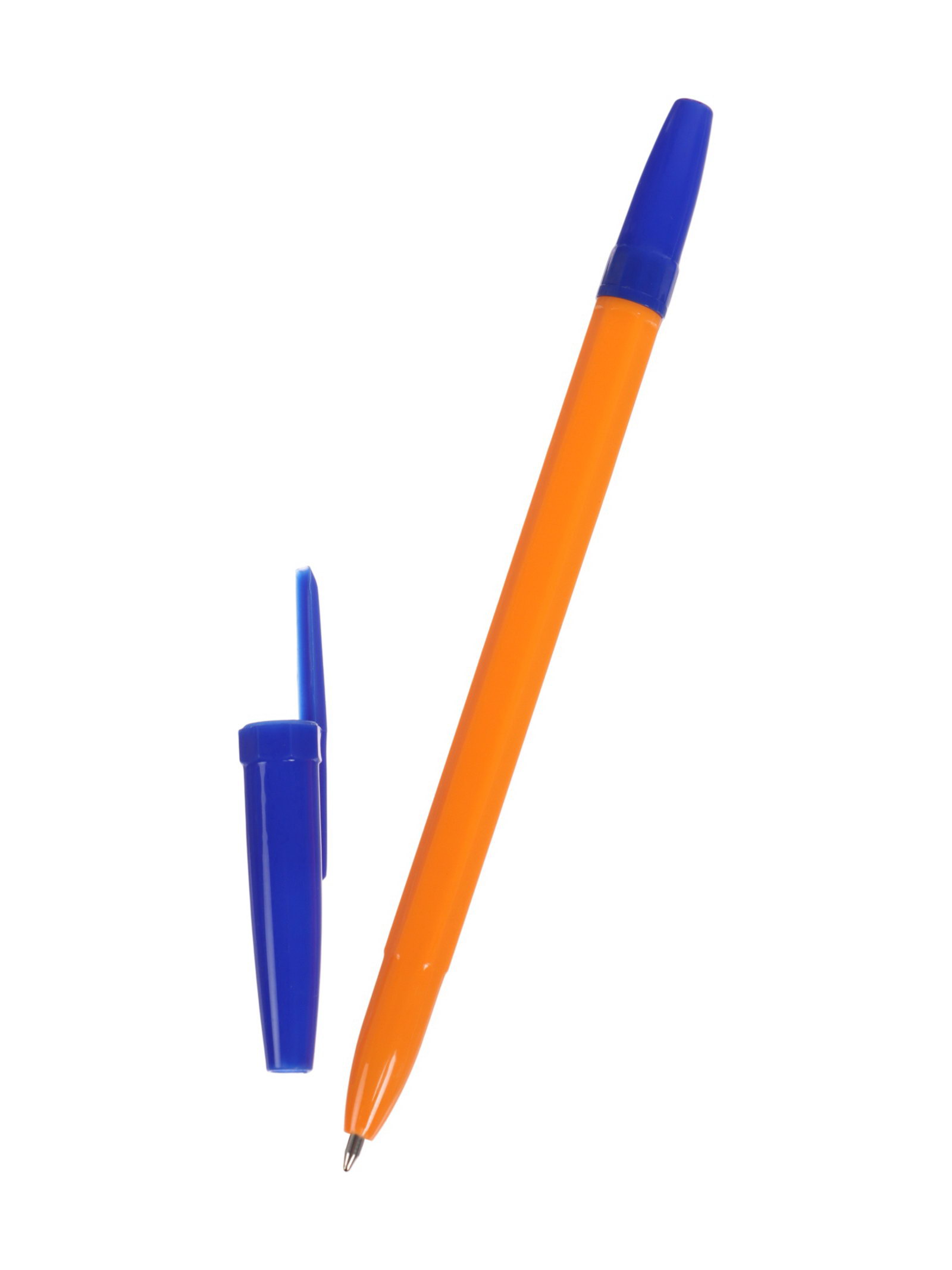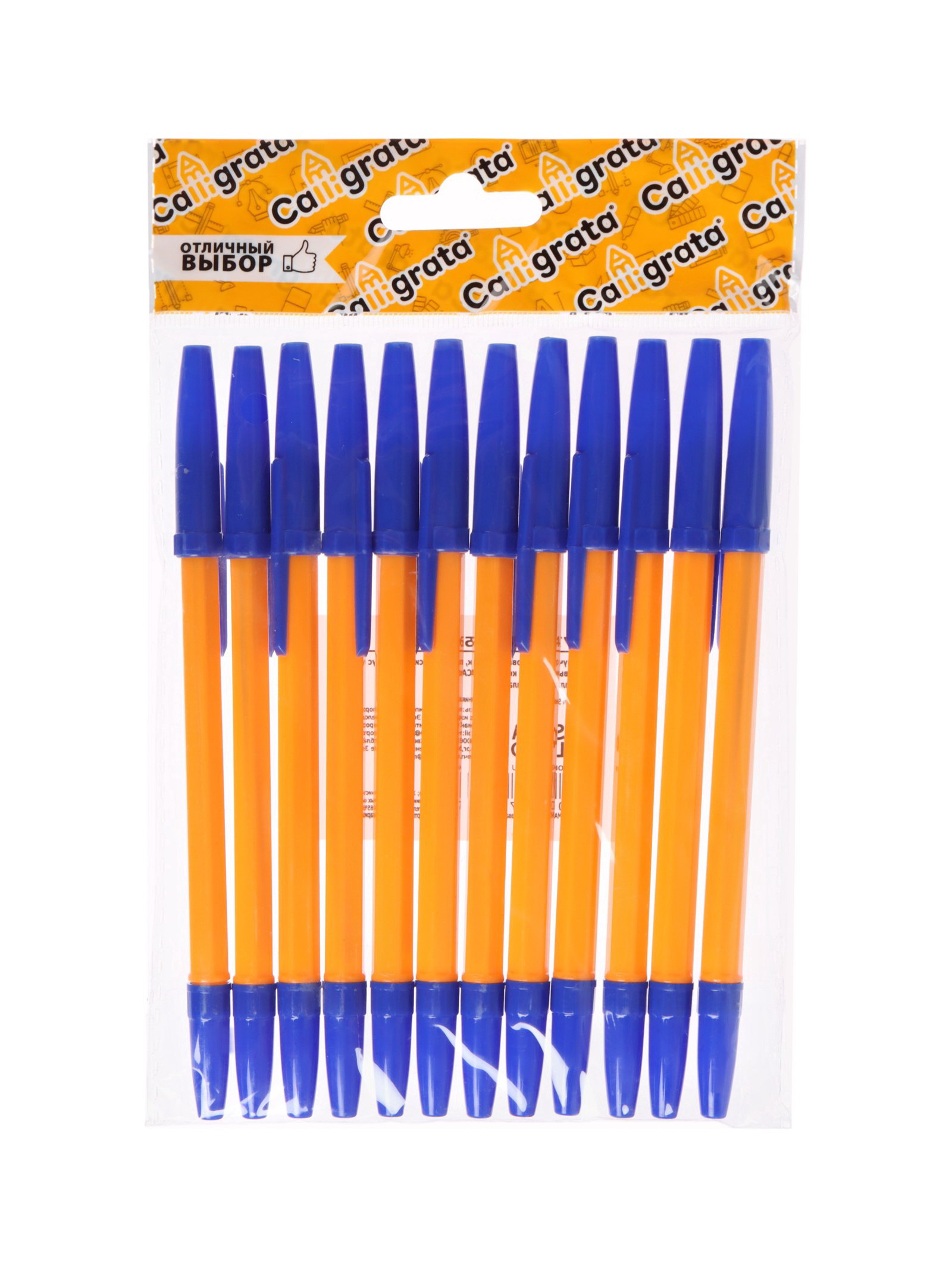 Набор шариковых ручек 12 штук, синий стержень, узел 0.7 мм, оранжевый корпус с синим колпачком, Calligrata, Китай