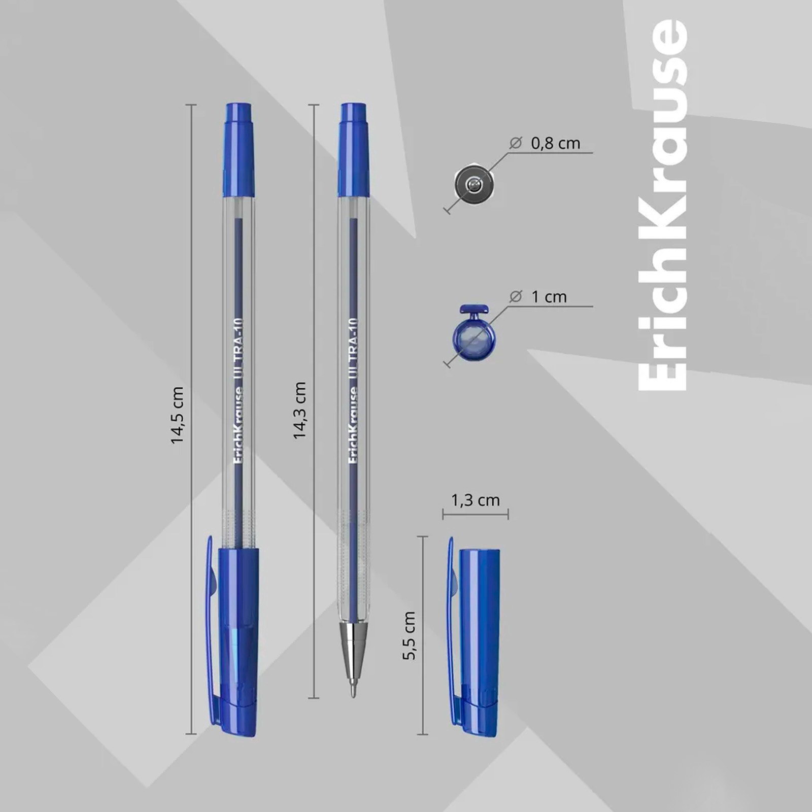 Набор ручек шариковых 3 штуки, ULTRA-10 Stick Classic, узел 0.7 мм, чернила синие, длина линии письма 2000 метров, 20x5.5x1.4 см., ErichKrause, Индия
