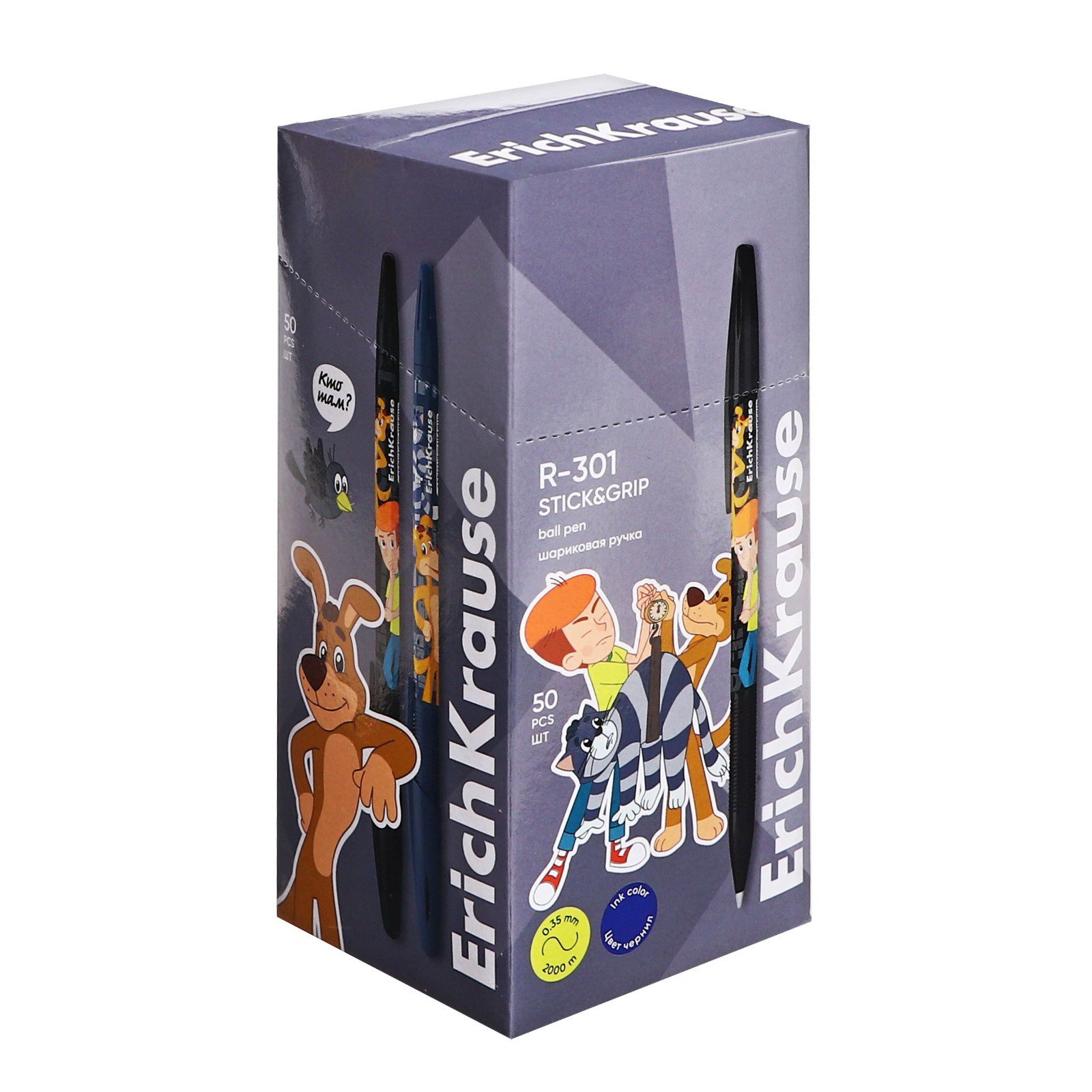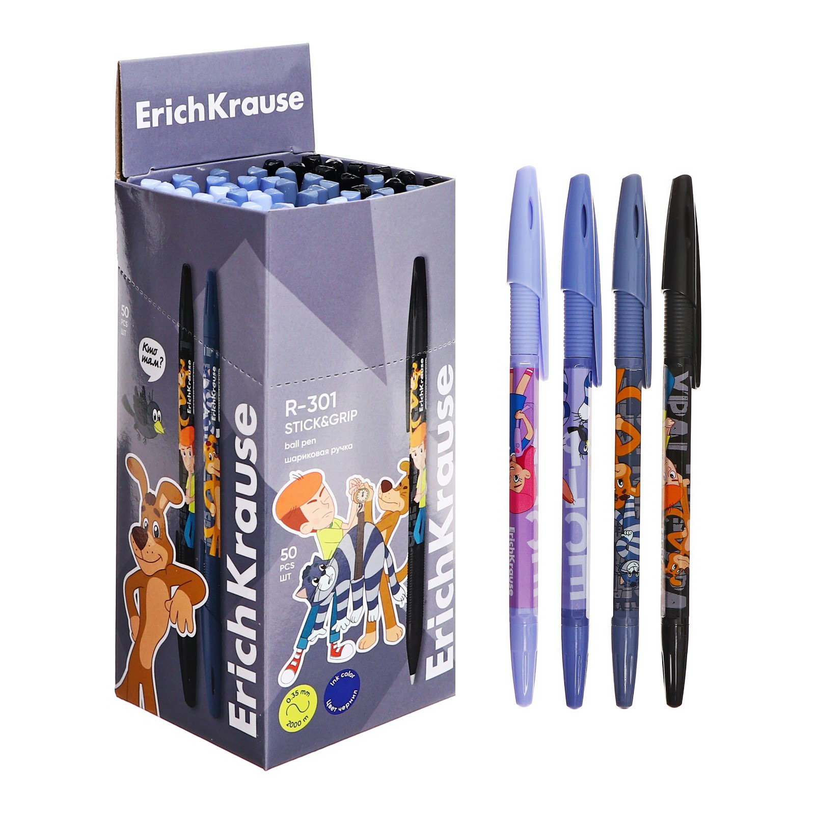 Ручка шариковая R-301 Stick&Grip "Простоквашино" узел 0.7мм, цвет синяя, 1.2x0.9x15.5 см., ErichKrause, Китай