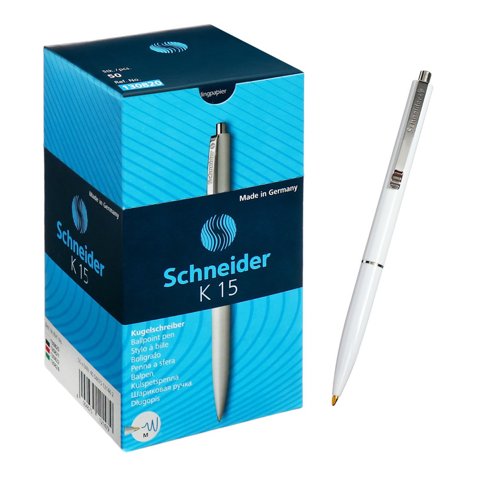 Ручка шариковая автоматическая K15, чернила синие, узел 1.0мм, корпус белый матовый, под лого, 0.8x13.8x1.3 см., Schneider, Германия