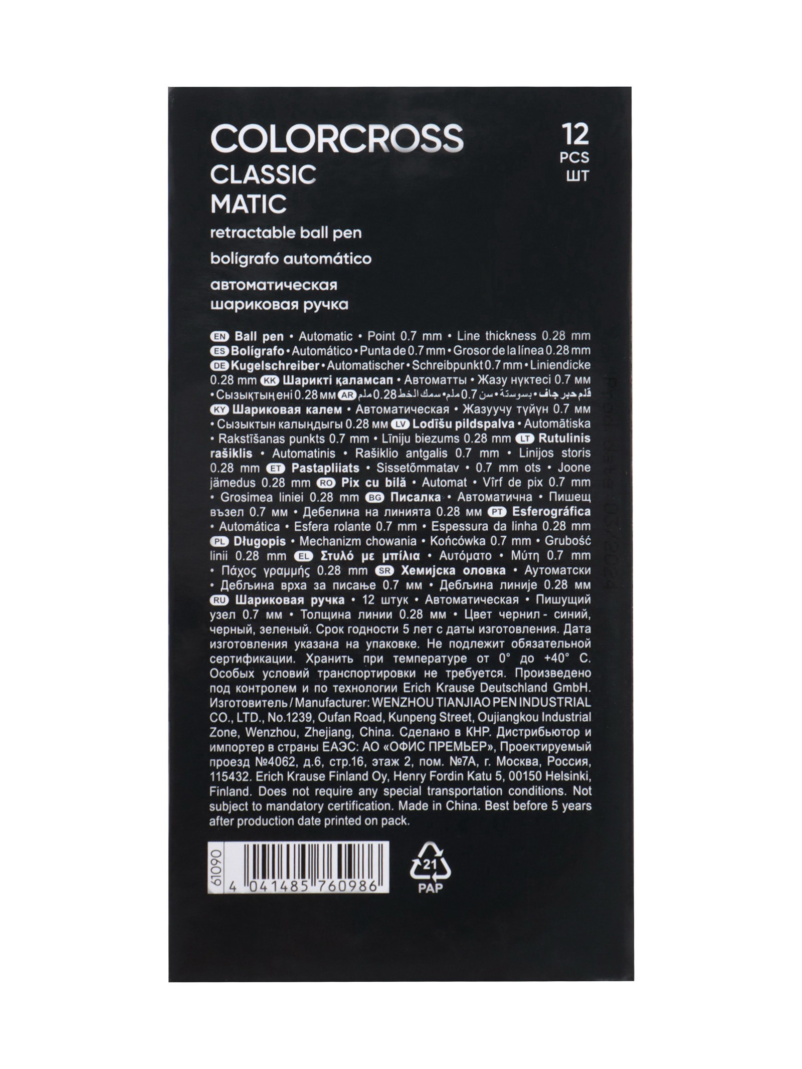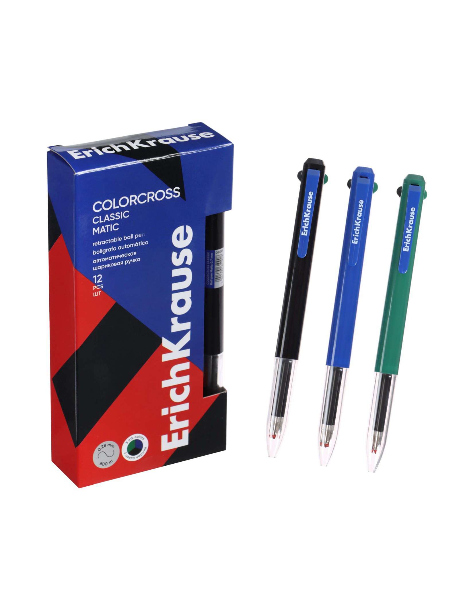 Ручка шариковая. Colorcross, автоматическая, 3-цветная, узел 0.7 мм, 1x14.5x1.5 см., ErichKrause, Китай
