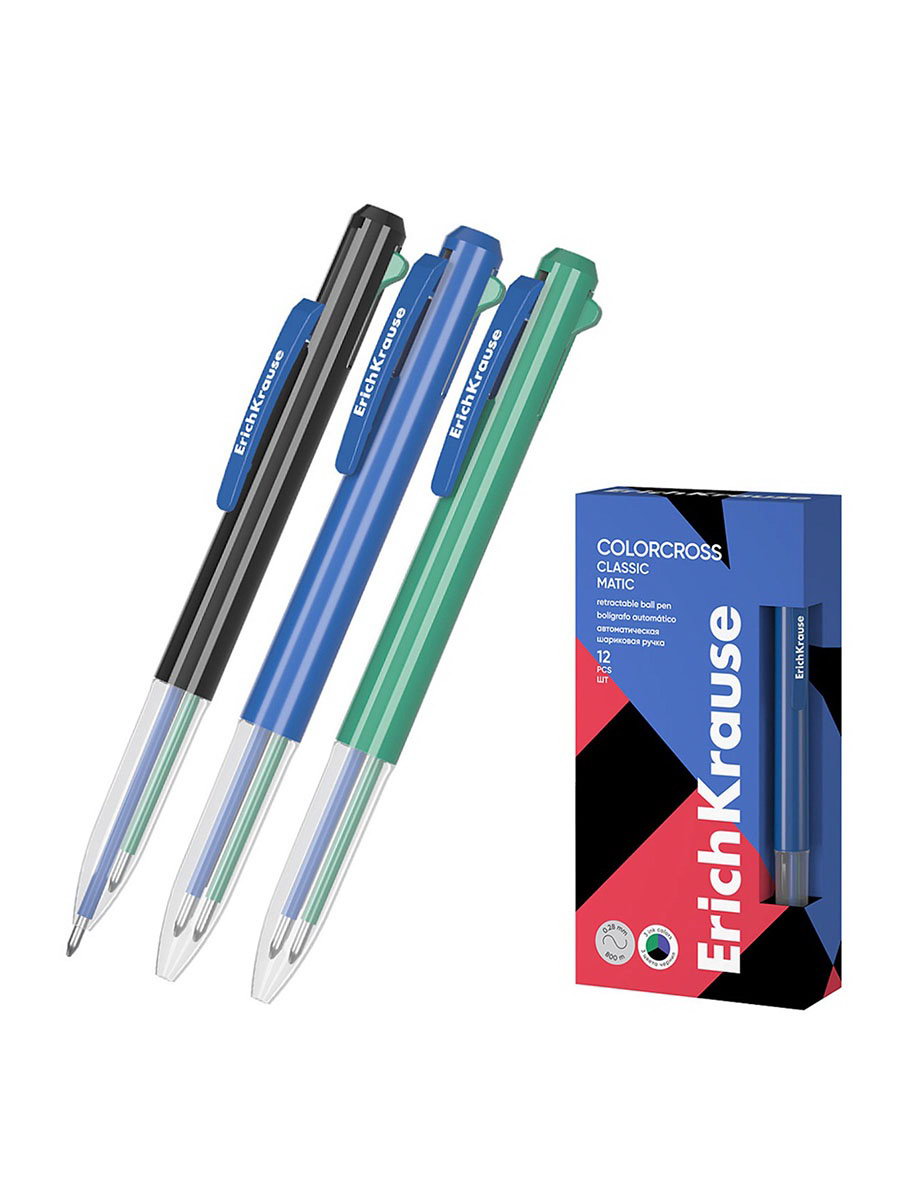 Ручка шариковая многоцветная, автоматическая, 3 цвета, Colorcross, узел 0.7 мм, мягкое письмо, 1x14.5x1.5 см., ErichKrause, Китай