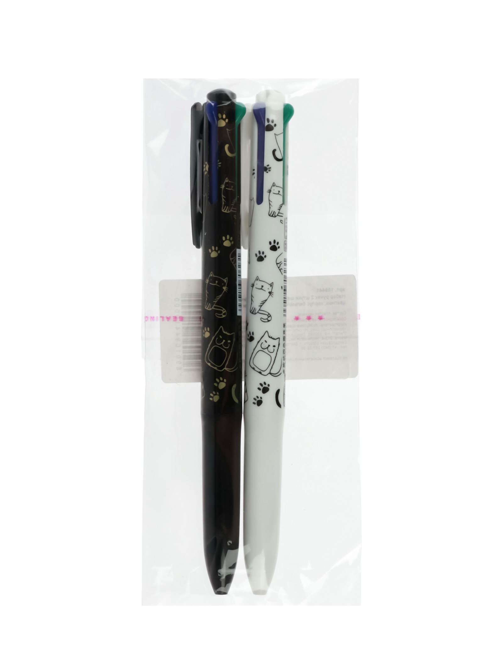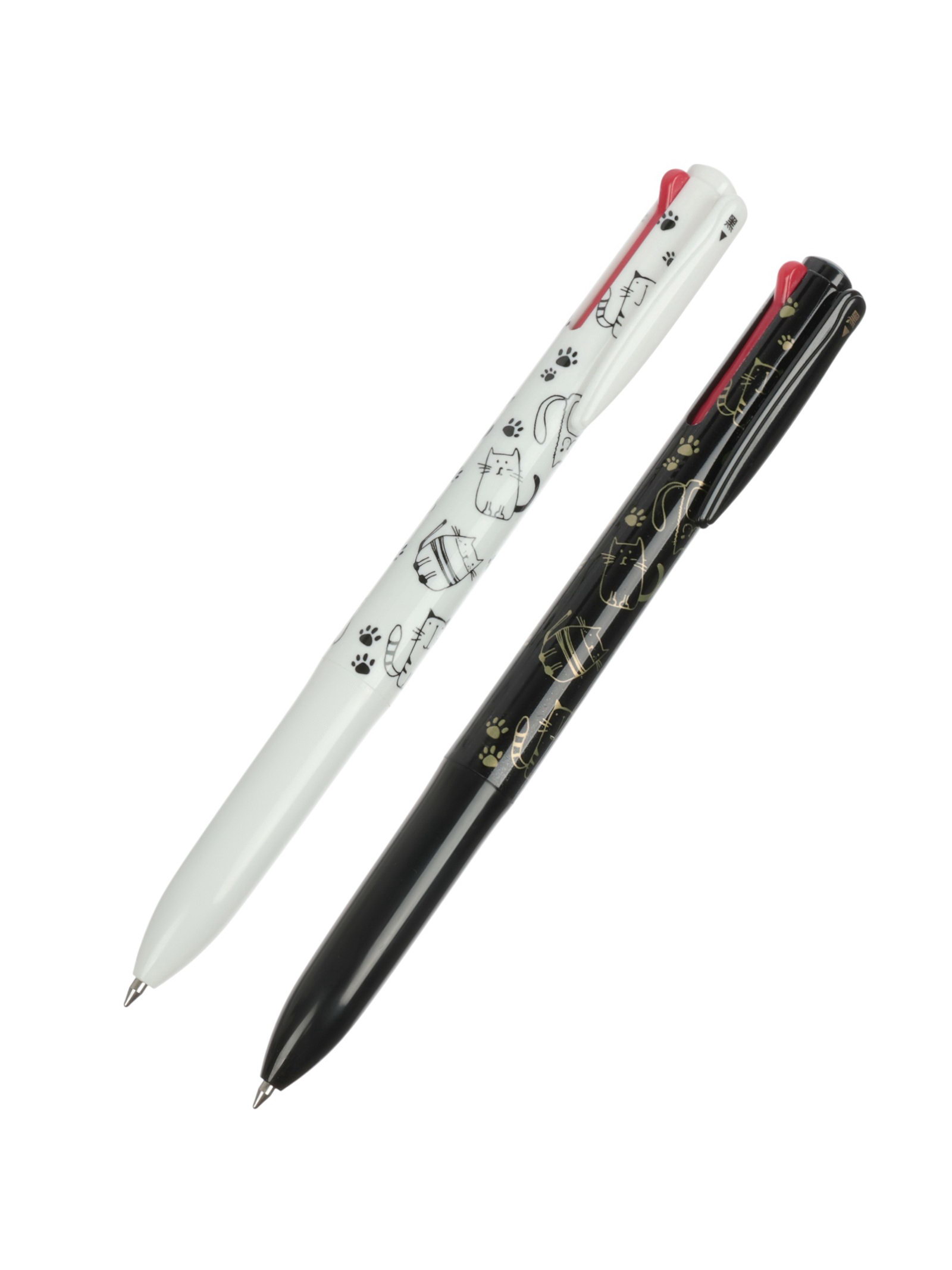Набор ручек 2 штуки, шариковые, автоматические, 4-х цветные, корпус белый/черный, с рисунком, Китай