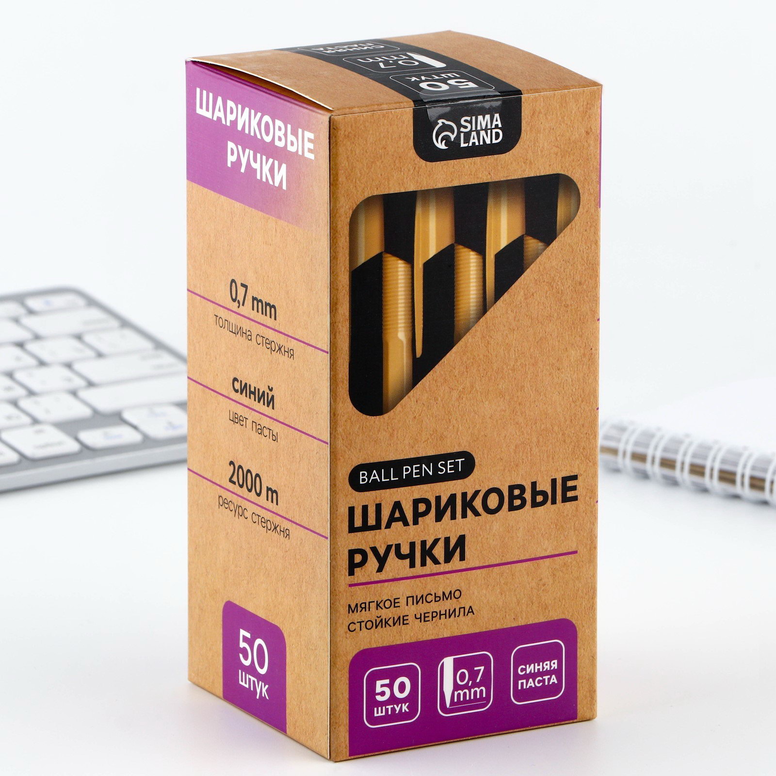 Размер упаковки: 7.5 x 16 x 7.5 см. tnved: 9608101000 В наборе, шт.: 50 Набор: Да Наличие грипа: Нет Европодвес: Нет Штрихкод на единице товара: Нет Особенности ручек: Без особенностей Цвет стержня: Синий Тип: Неавтоматическая ручка Стержень заменяемый: Да Диаметр пишущего узла, мм: 0.7 Ручка незаменимый помощник для письма. Практичный инструмент для повседневных задач, конспектирования и творческих записей. Основные преимущества: