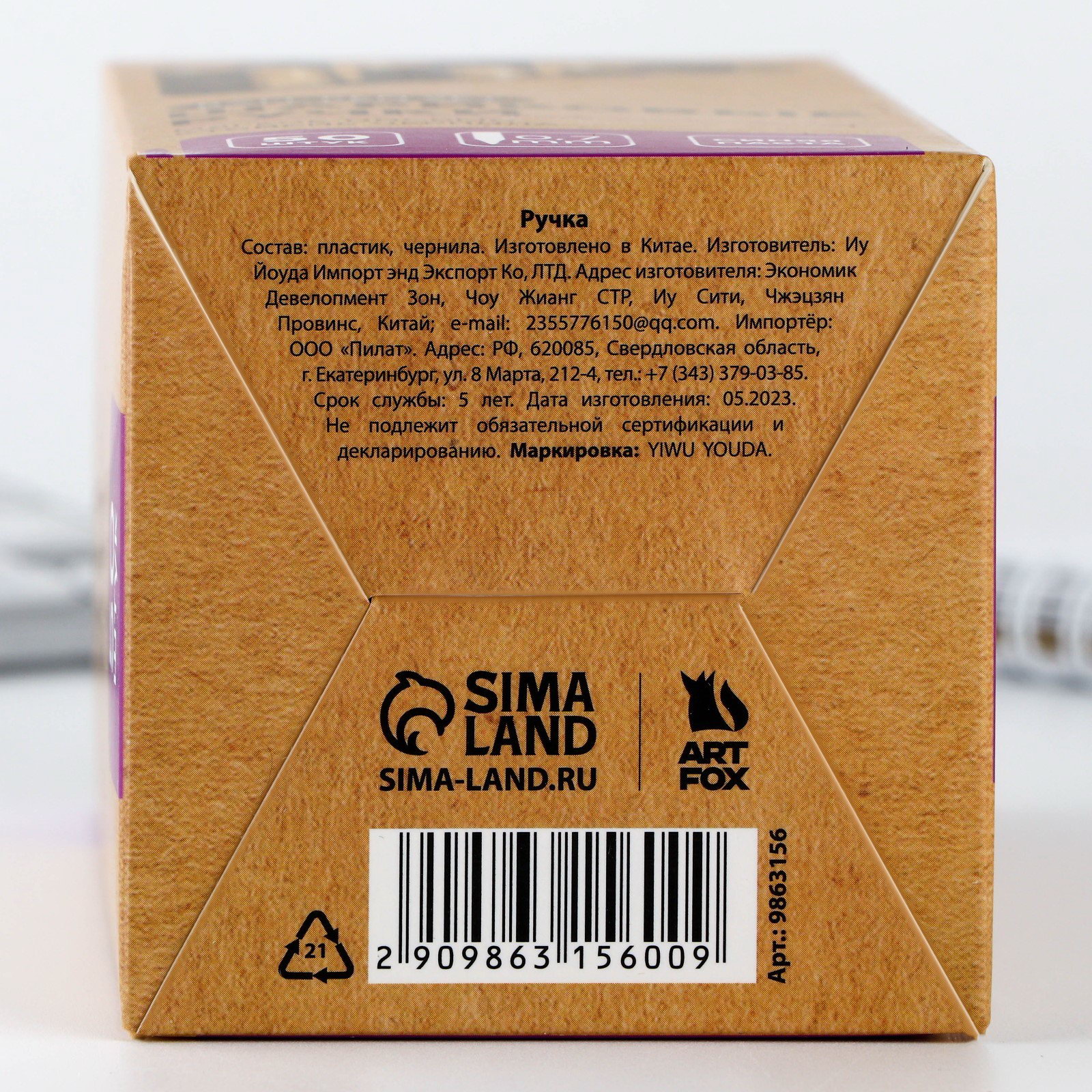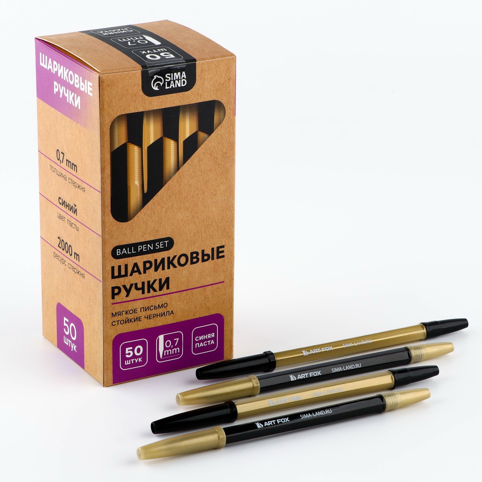 Ручка шариковая, синяя паста, 0.7 мм, набор 50 шт., в коробке, 7.2x15.8x15.8 см., ArtFox, Китай