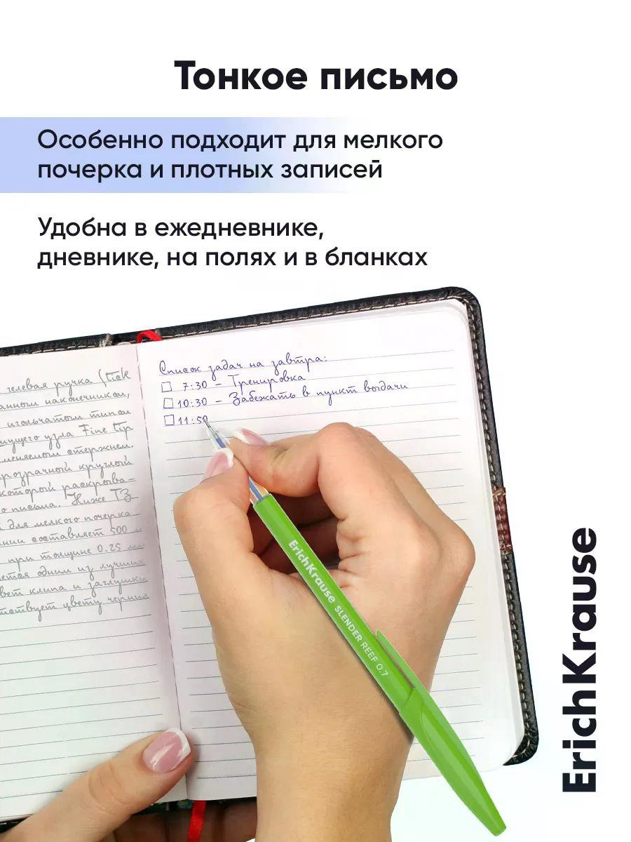 Размер упаковки: 5 x 4 x 19.5 см. tnved: 9608500000 Температурное ограничение: Нет Классическая шариковая ручка Stick с утонченным игольчатым типом пишущего узла Fine tip, технологией письма Super Glide и заменяемым стержнем. Ручка имеет непрозрачный круглый корпус насыщенных цветов и вентилируемый колпачок. 5-канальный пишущий узел с диаметром шарика 0.7 мм в сочетании с чернилами пониженной вязкости обеспечивает точное и быстрое письмо без усилий. Длина непрерывной линии составляет 1400 м при толщине 0.26 мм, что является высоким показателем в своей категории. Характеристики: Тип пишущего узла: игольчатый Толщина линии: 0,26 мм Диаметр шарика: 0,7 мм Максимальная длина непрерывной линии: 1400 м Цвет чернил: синий Тип чернил: пониженной вязкости (Ultra Glide Technology) Материал корпуса: пластик Цвет корпуса: ассорти Форма корпуса: круглая Диаметр корпуса: 8 мм | ||