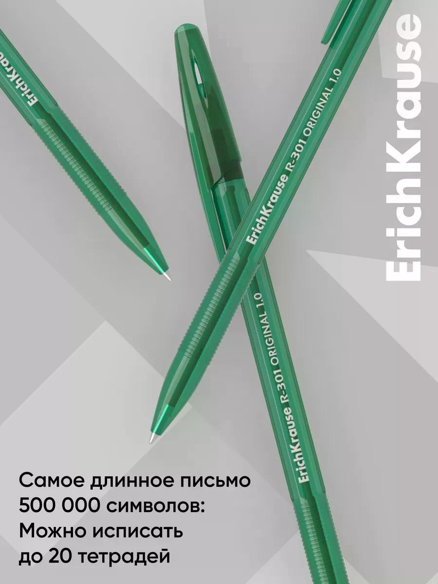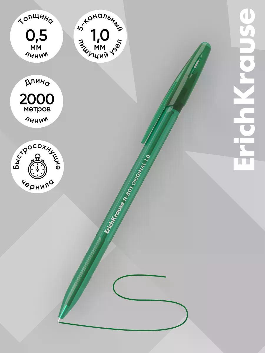 Ручка шариковая R-301 Stick Original, узел 1мм, зеленая, 1.2x0.9x15.5 см., ErichKrause, Китай
