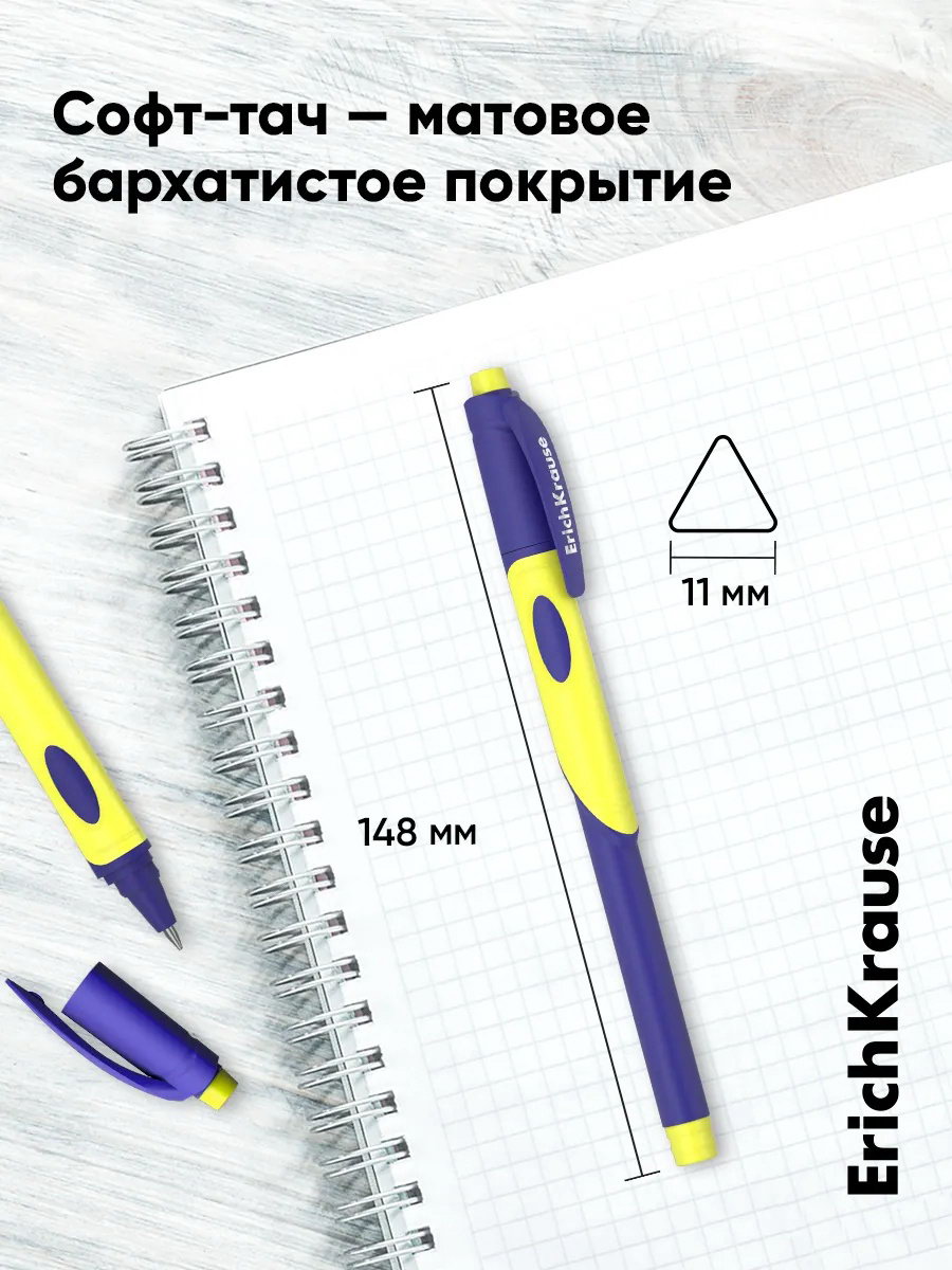 Размер упаковки: 15 x 1 x 2.5 см. tnved: 9608500000 Температурное ограничение: Нет Эргономичная шариковая ручка Stick&Grip с покрытием Soft Touch, стандартным типом пишущего узла, заменяемым стержнем увеличенного объема и уникальной технологией Super Glide. Ручка имеет непрозрачный матовый круглый корпус, треугольную эргономичную грип-зону с выемками для пальцев и вентилируемый колпачок. 5-канальный пишущий узел с диаметром шарика 0.5 мм в сочетании с чернилами пониженной вязкости обеспечивает мягкое и быстрое письмо без усилий. Благодаря увеличенному резервуару стержня длина непрерывной линии составляет 2000 м при толщине 0.25 мм, что является одним из лучших показателей в своей категории. Характеристики: Тип пишущего узла: стандартный (пулевидный) Толщина линии: 0,25 мм Диаметр шарика: 0,5 мм Максимальная длина непрерывной линии: 2000 м Цвет чернил: синий Цвет грипа: жёлтый Тип чернил: пониженной вязкости (Ultra Glide Technology) Материал корпуса: пластик Цвет корпуса: ассорти Форма корпуса: круглая Диаметр корпуса: 11 мм | ||