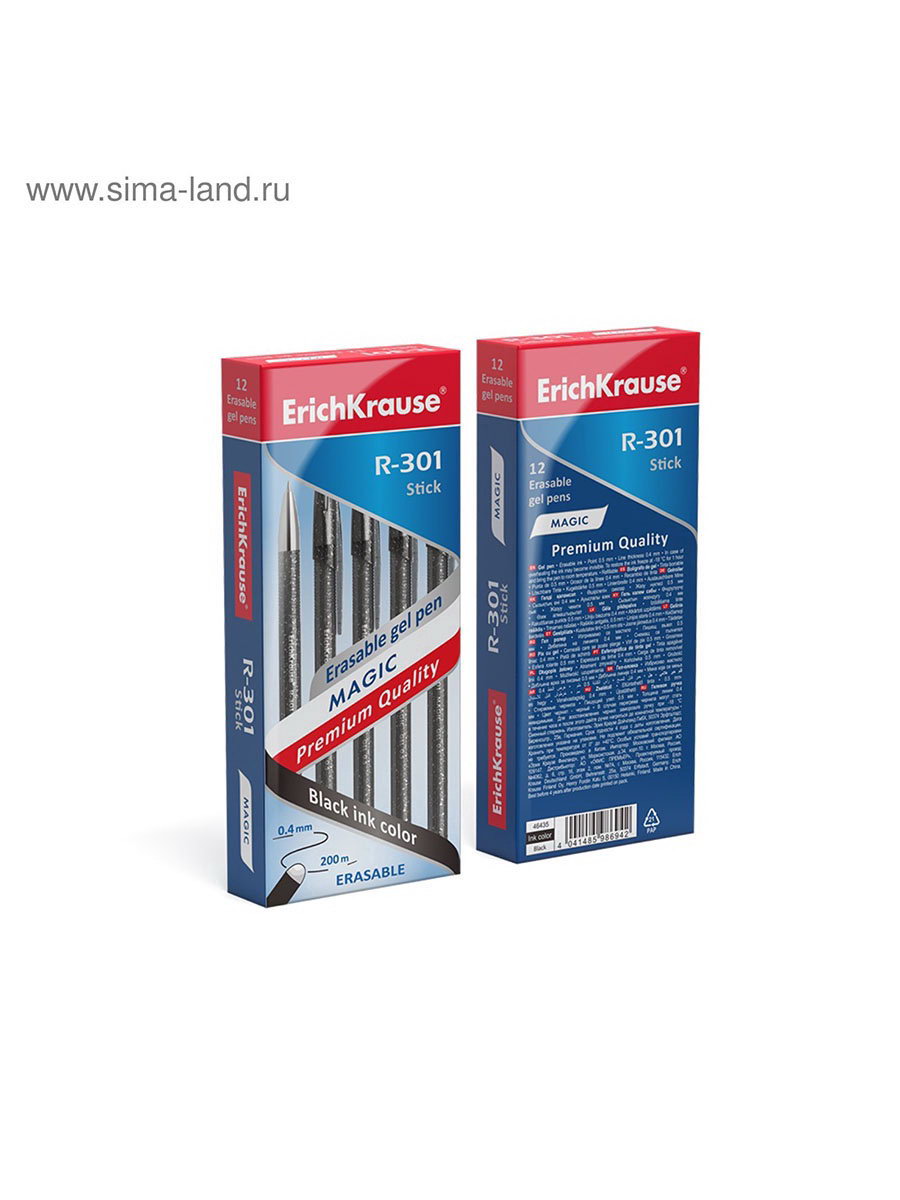 Стираемая ручка R=301 Magic Gel, гелевая, узел 0.5 мм, чёрная, ErichKrause, Китай