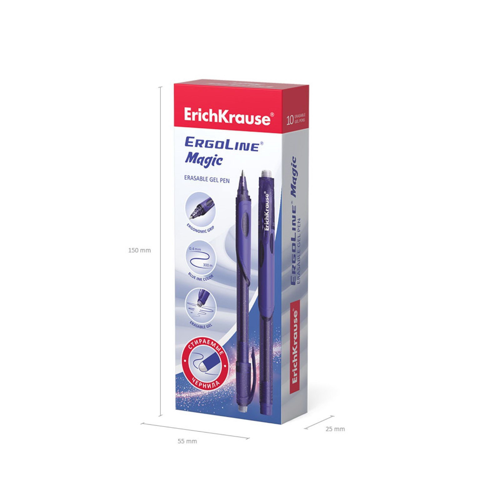 Ручка со стираемыми чернилами гелевая ErgoLine Magic, узел 0.5 мм, чернила синие, длина линии письма 300 метров, 1.5x0.9x14.8 см., ErichKrause, Китай