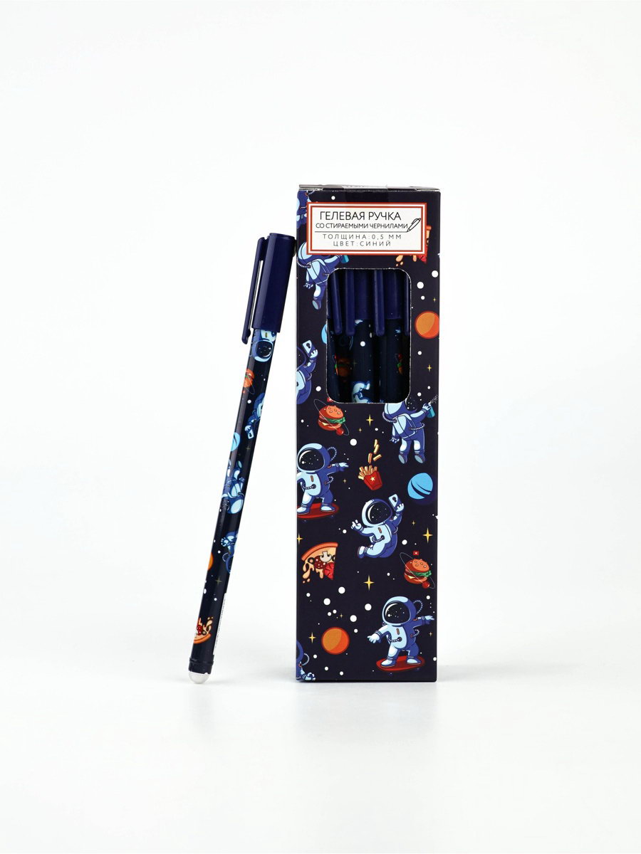 Ручка пластик пиши-стирай с колпачком "Космонавт", синяя паста, гелевая 0.5 мм, 0.8x16.5x0.8 см., ArtFox, Китай