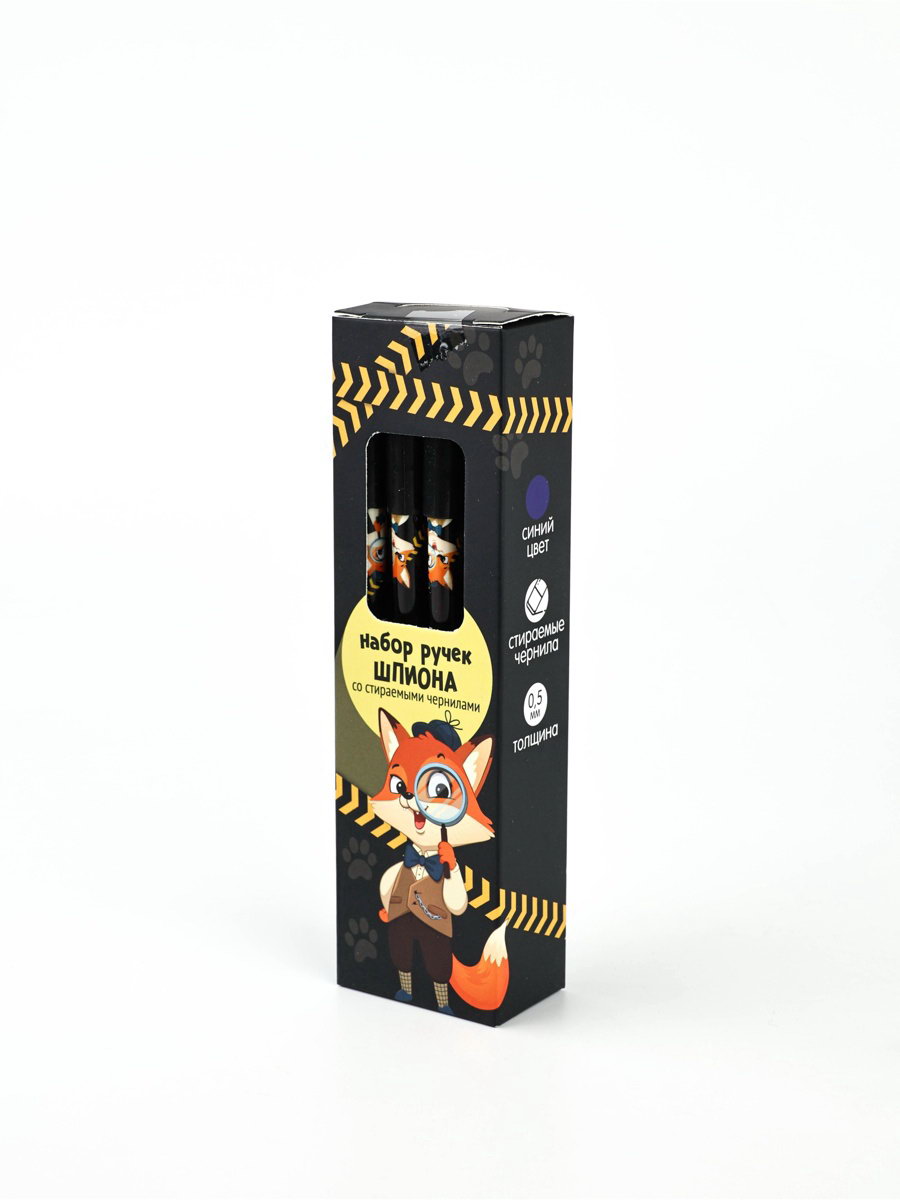 Ручка пластик пиши-стирай с колпачком "Набор ручек шпиона", синяя паста, гелевая 0.5 мм, 0.8x16.5x0.8 см., ArtFox, Китай