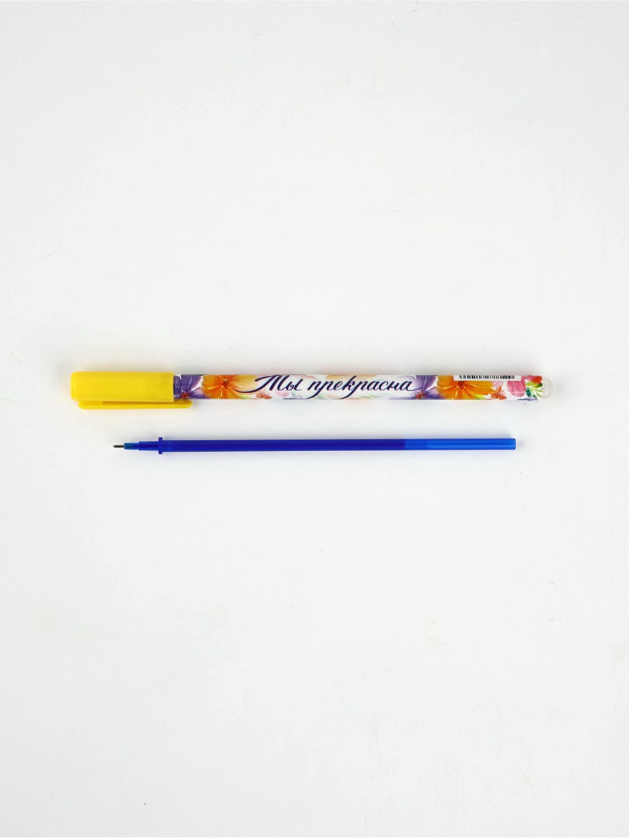 Ручка пластик пиши-стирай с колпачком "Ты прекрасна", синяя паста, гелевая 0.5 мм, 0.8x16x0.8 см., ArtFox, Китай