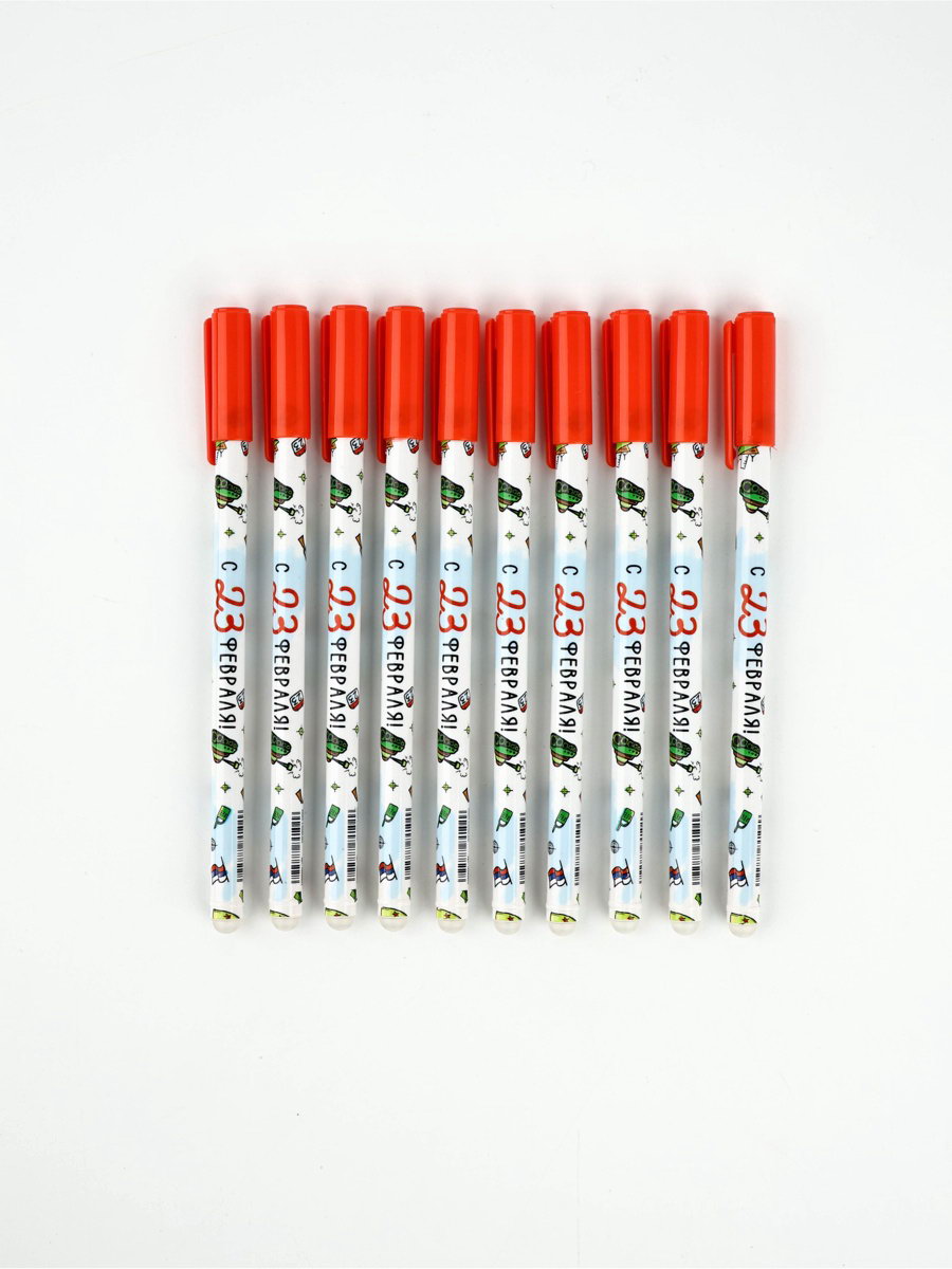 Ручка пластик пиши-стирай с колпачком "С 23 февраля!", синяя паста, гелевая 0.5 мм, 0.8x16x0.8 см., ArtFox, Китай
