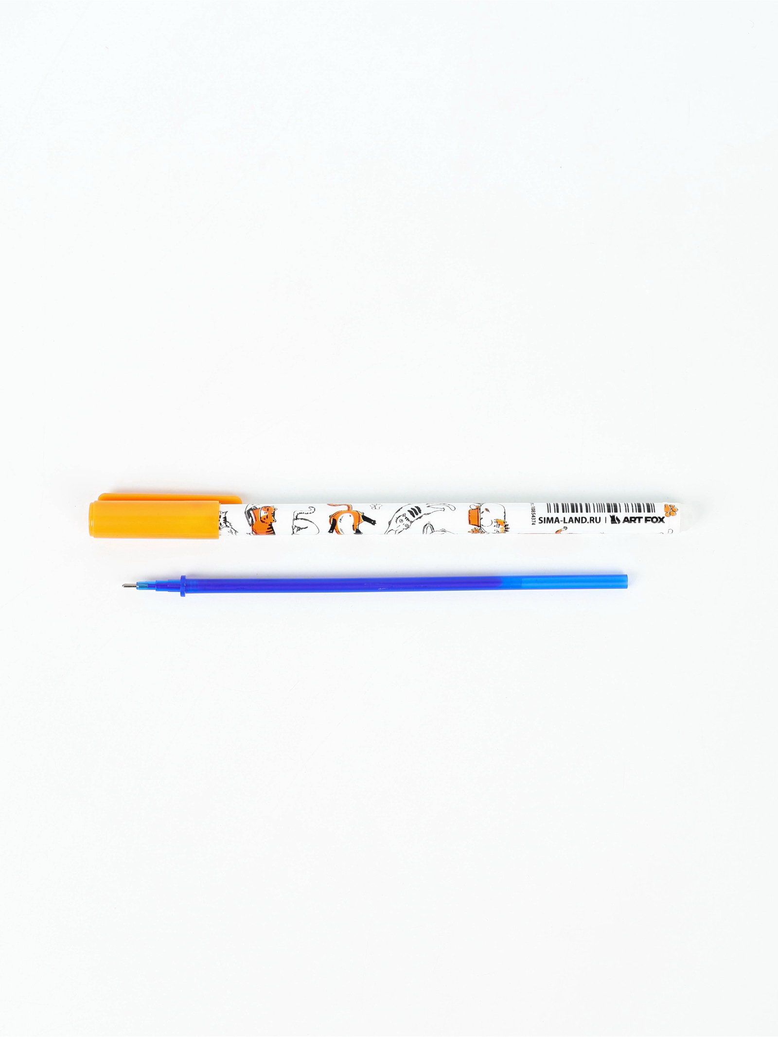 Ручка пиши-стирай, синяя паста, гелевая 0.5 мм, с колпачком "Кот", 0.8x16.5x0.8 см., ArtFox, Китай