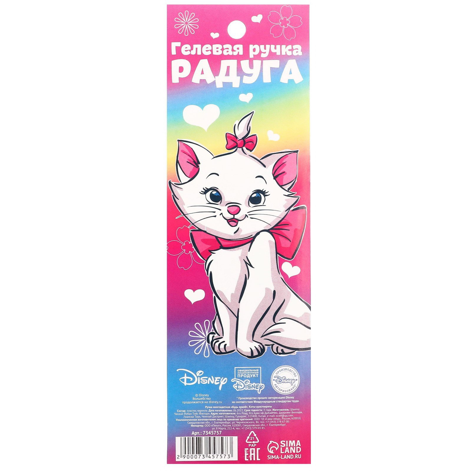 Размер упаковки: 6 x 1 x 19 см. Для кого: Для девочки Наличие грипа: Нет Диаметр пишущего узла, мм: 0.5 tnved: 9608101000 Лицензия разработки: Да Штрихкод на единице товара: Да Европодвес: Да Набор: Нет Адресат: Без адресата Цвет стержня: Разные цвета Составляющие набора: Ручка Тематика праздника: Универсальная тематика Цвет: Разноцветный Вид упаковки: Блистер Материал упаковки: Пластик Количество цветов: 7 | ||