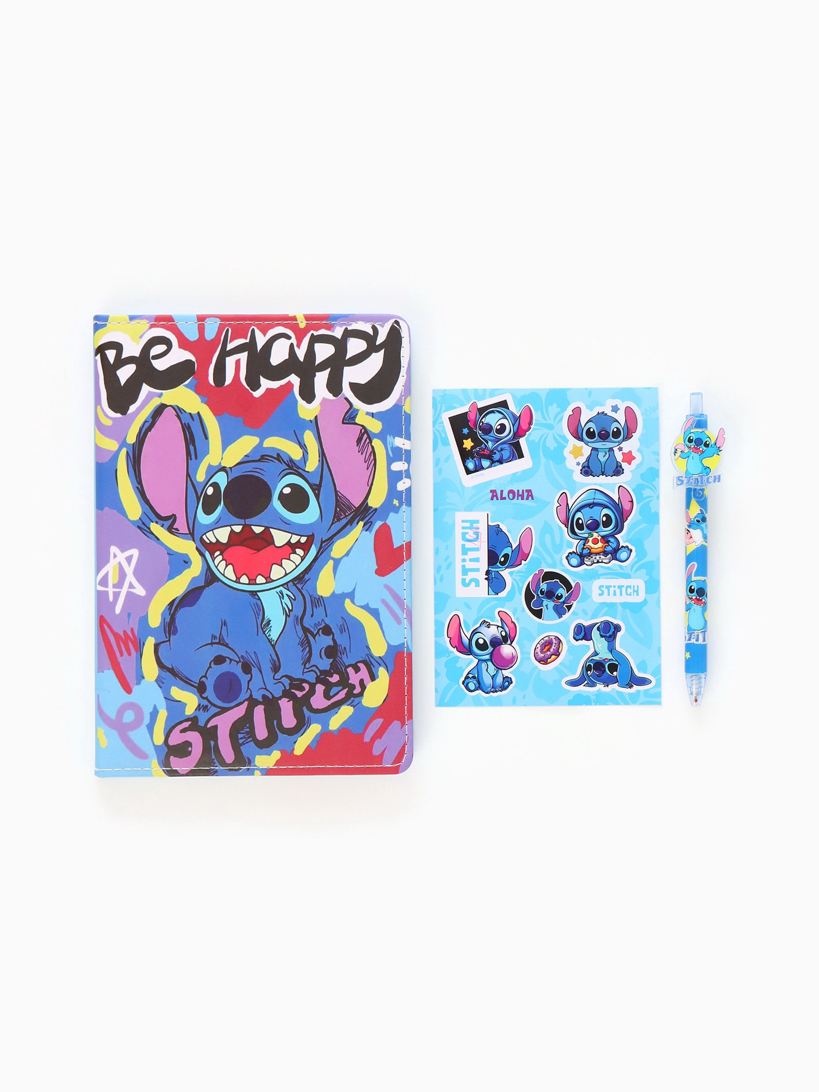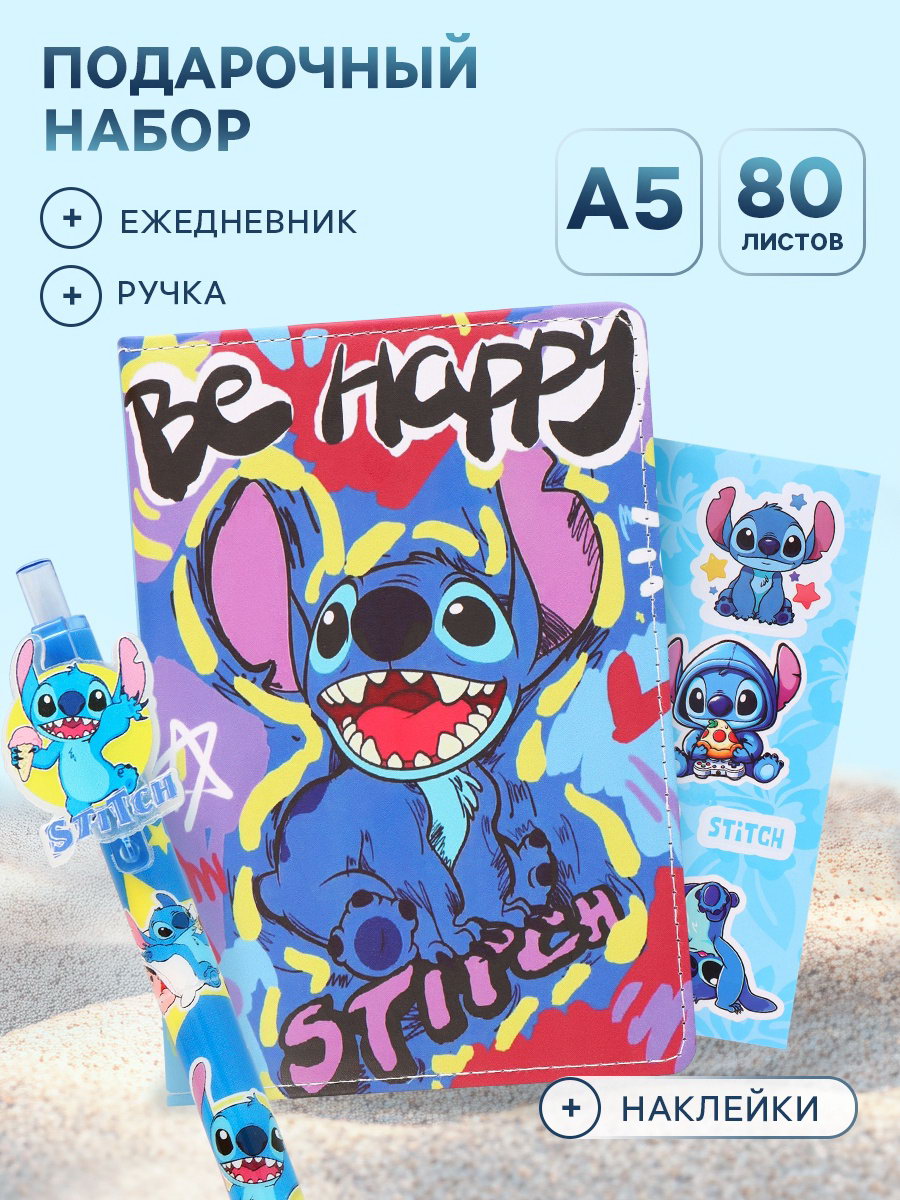 Подарочный набор: ежедневник А5, 80 л, ручка и наклейки Стич, 14x20x0.5 см., Disney, Китай