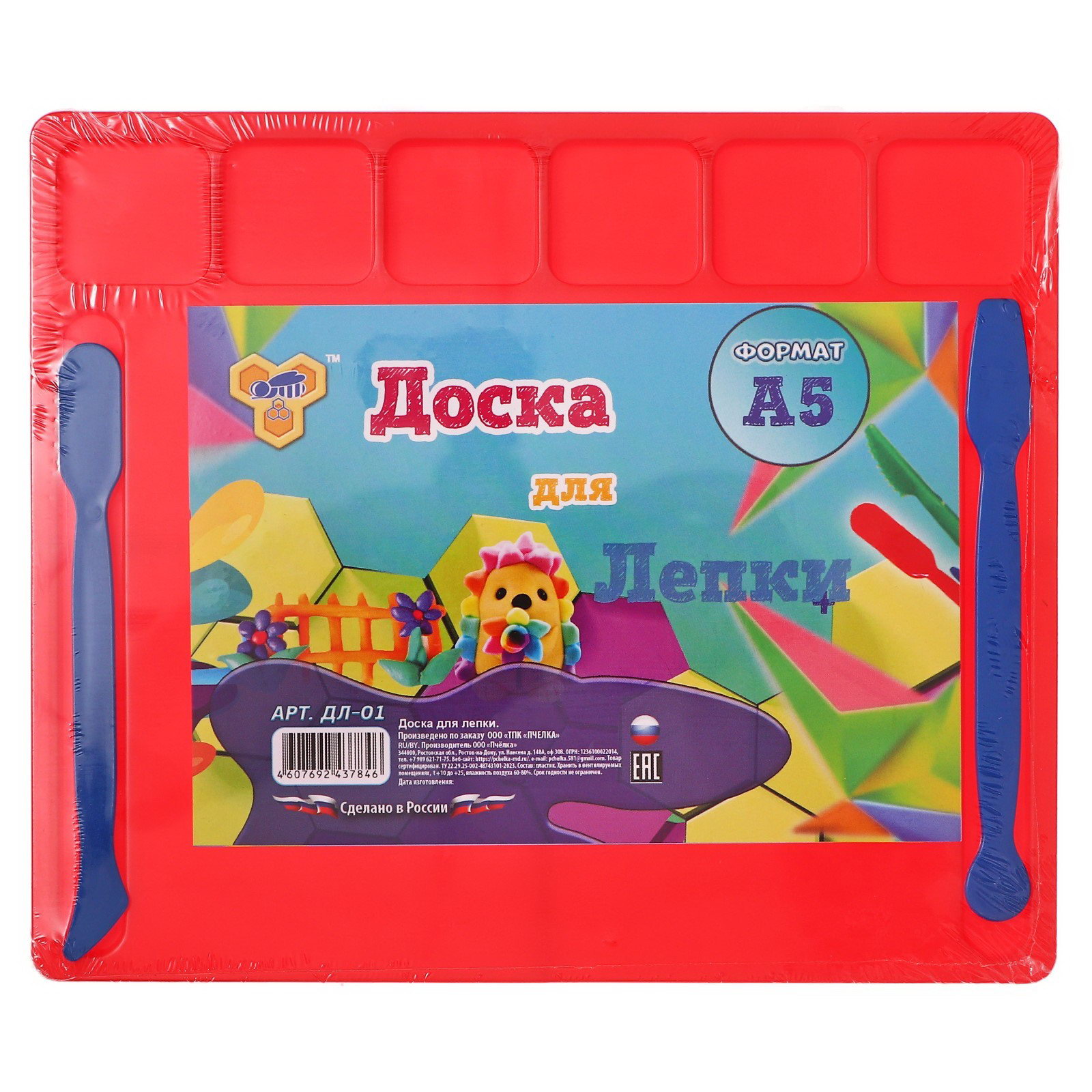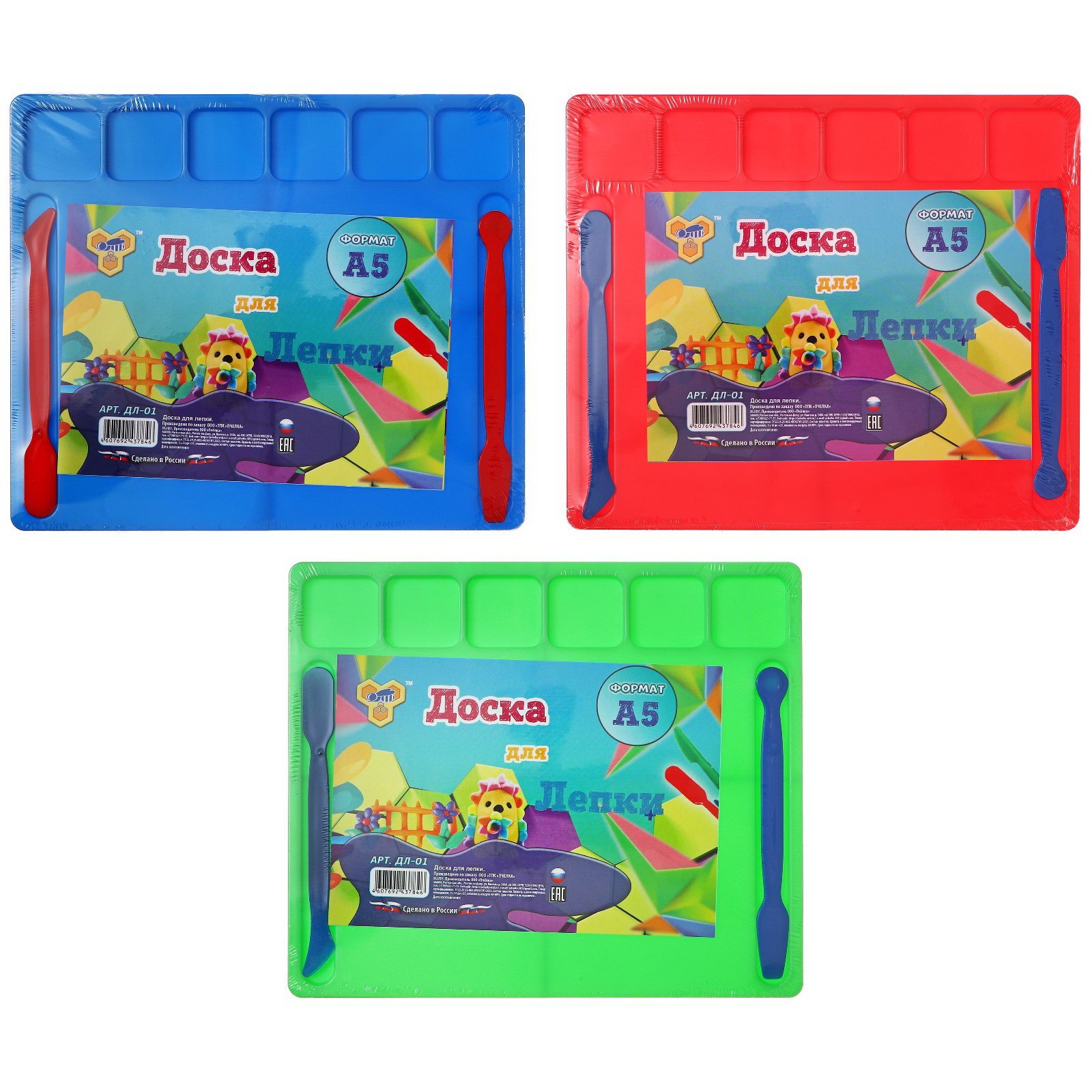 Доска для лепки пластиковая А5 2 стека, с отделениями для пластилина и бортиком 1.8 мм, цветная, МИКС, Calligrata, Россия