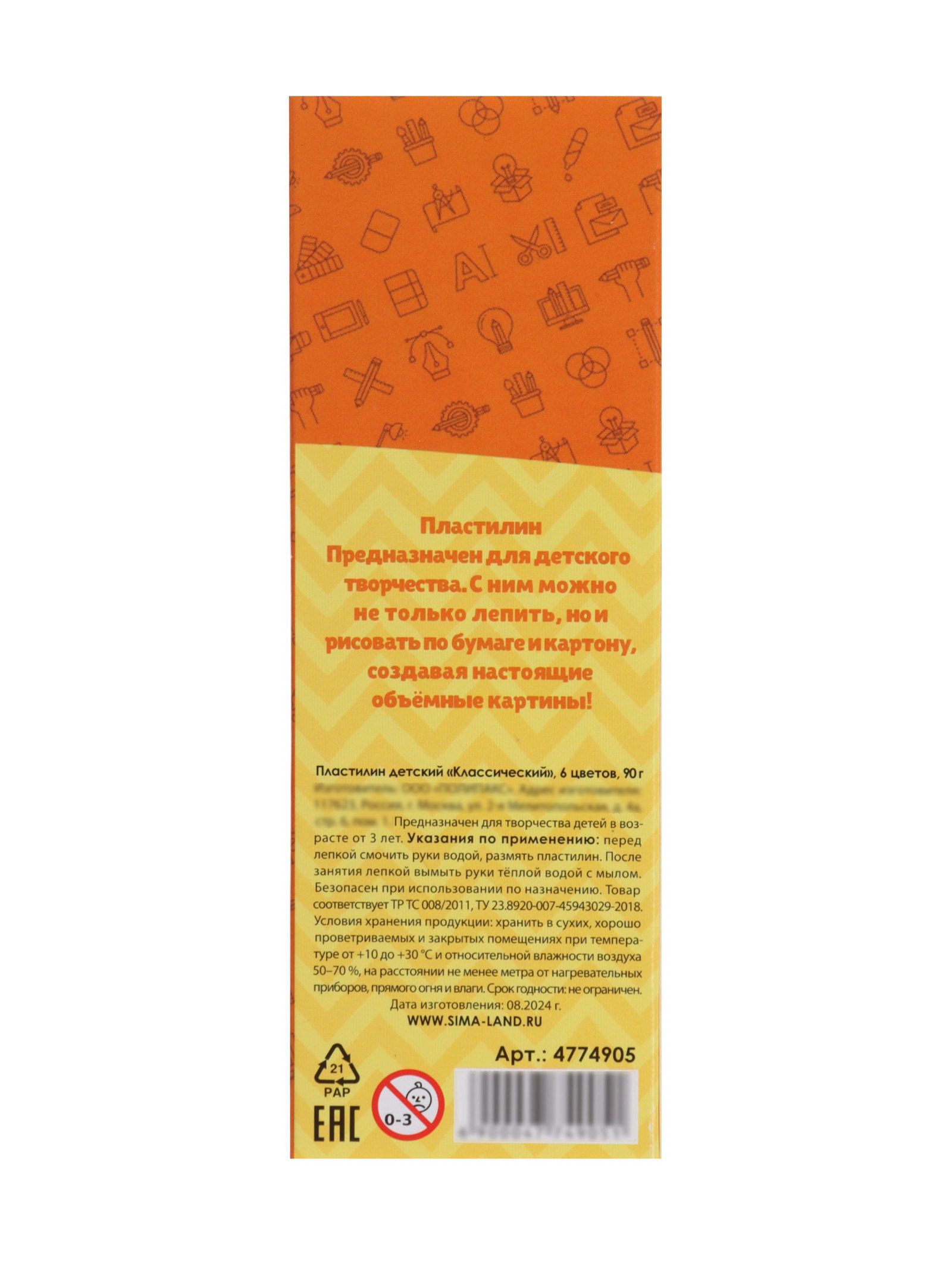 Размер упаковки: 5.5 x 2 x 16.3 см. Реестр Минпромторга: Нет tnved: 3407000000 Со стеком (да/нет): Нет Температурное ограничение: Нет Вес, г: 90 Количество цветов: 6 Вид изделия: Пластилин Вид упаковки: Коробка картонная Набор: Да Европодвес: Нет Тип: Наборы для лепки Штрихкод на единице товара: Да Температурное ограничение транспортировки: Нет Тематика набора: Лепка Возраст: От 3 лет Особенности изделия: Без особенностей Пластилин предназначен для лепки и моделирования в детском творчестве. Яркий и пластичный пластилин изготовлен из высококачественных компонентов. Огромный набор пластилина красивых цветов разных оттенков: от нежных до более насыщенных. В меру мягкий и в меру твёрдый. Является отличным материалом для обучения лепке. Пластилин рекомендуют не только педагоги и родители, но и профессиональные мультипликаторы. Не имеет выраженного неприятного запаха. Имеет яркие, не приглушённые чистые цвета, которые отлично смешивающиеся друг с другом. Отлично держит форму, не рвётся и не крошится при перегибании. Не липнет к рукам. Идеально вытягивается до тончайшей колбаски. Можно делать очень маленькие детали, которые не деформируются при соединении. | ||