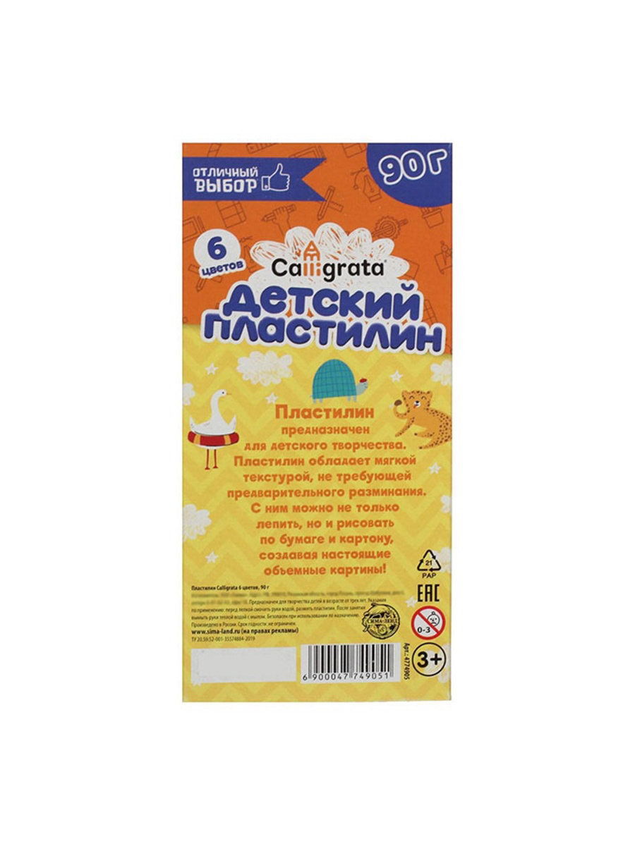 Пластилин 6 цветов, 90 г, Calligrata, Россия