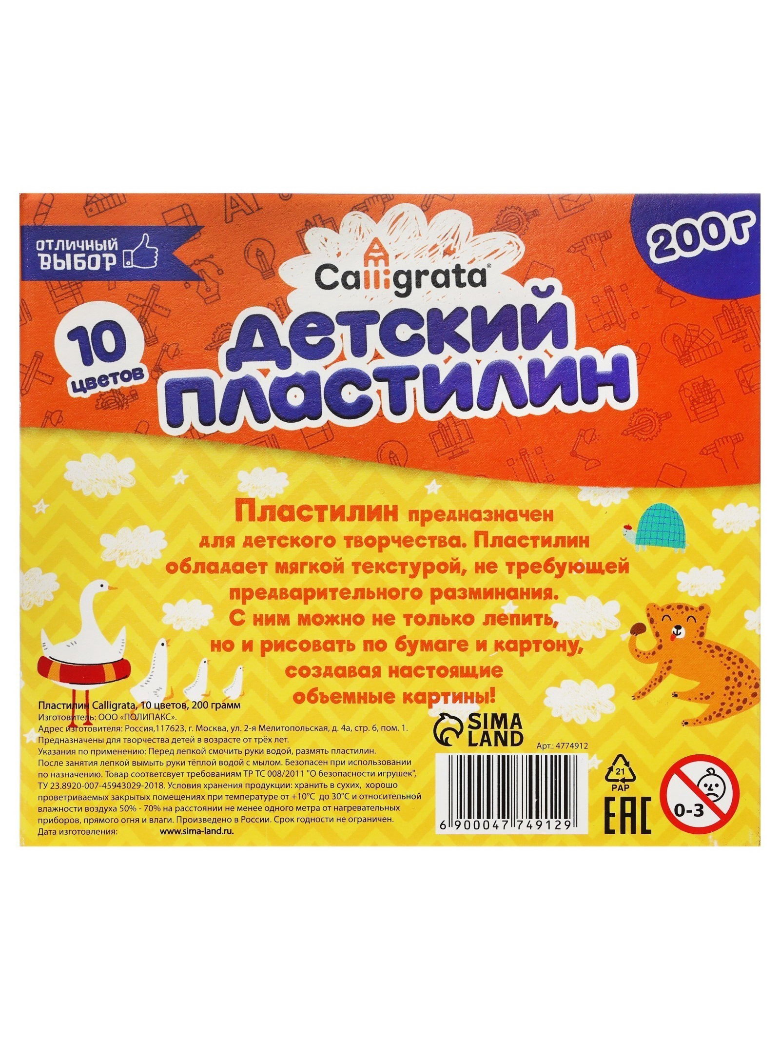 Пластилин "Классический", 10 цветов, 200 г, Calligrata, Россия