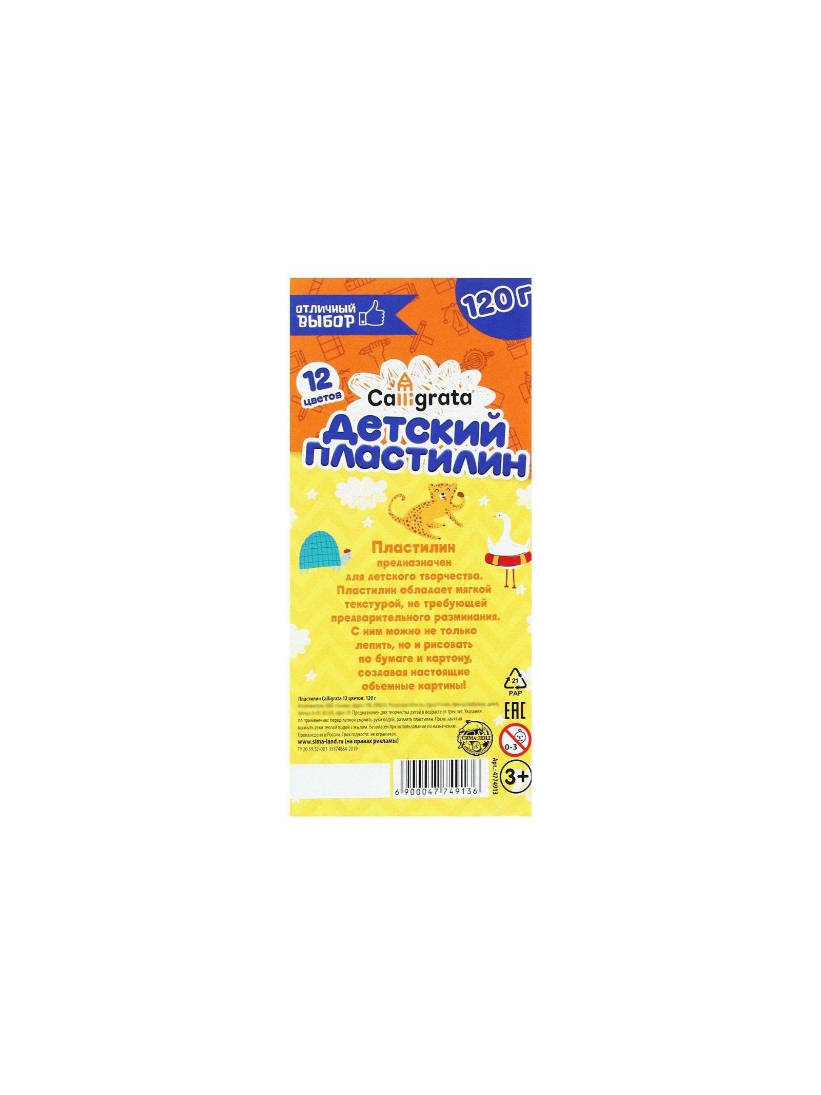 Размер упаковки: 10 x 2 x 11 см. tnved: 3407000000 Со стеком (да/нет): Нет Температурное ограничение: Нет Европодвес: Нет Количество цветов: 12 Штрихкод на единице товара: Да Вес, г: 120 Особенности изделия: Без особенностей Температурное ограничение транспортировки: Нет Возраст: От 3 лет Тематика набора: Лепка Пластилин предназначен для лепки и моделирования в детском творчестве. Яркий и пластичный пластилин изготовлен из высококачественных компонентов. Огромный набор пластилина красивых цветов разных оттенков: от нежных до более насыщенных. В меру мягкий и в меру твёрдый. Является отличным материалом для обучения лепке. Пластилин рекомендуют не только педагоги и родители, но и профессиональные мультипликаторы. Не имеет выраженного неприятного запаха. Имеет яркие, не приглушённые чистые цвета, которые отлично смешивающиеся друг с другом. Отлично держит форму, не рвётся и не крошится при перегибании. Не липнет к рукам. Идеально вытягивается до тончайшей колбаски. Можно делать очень маленькие детали, которые не деформируются при соединении. | ||