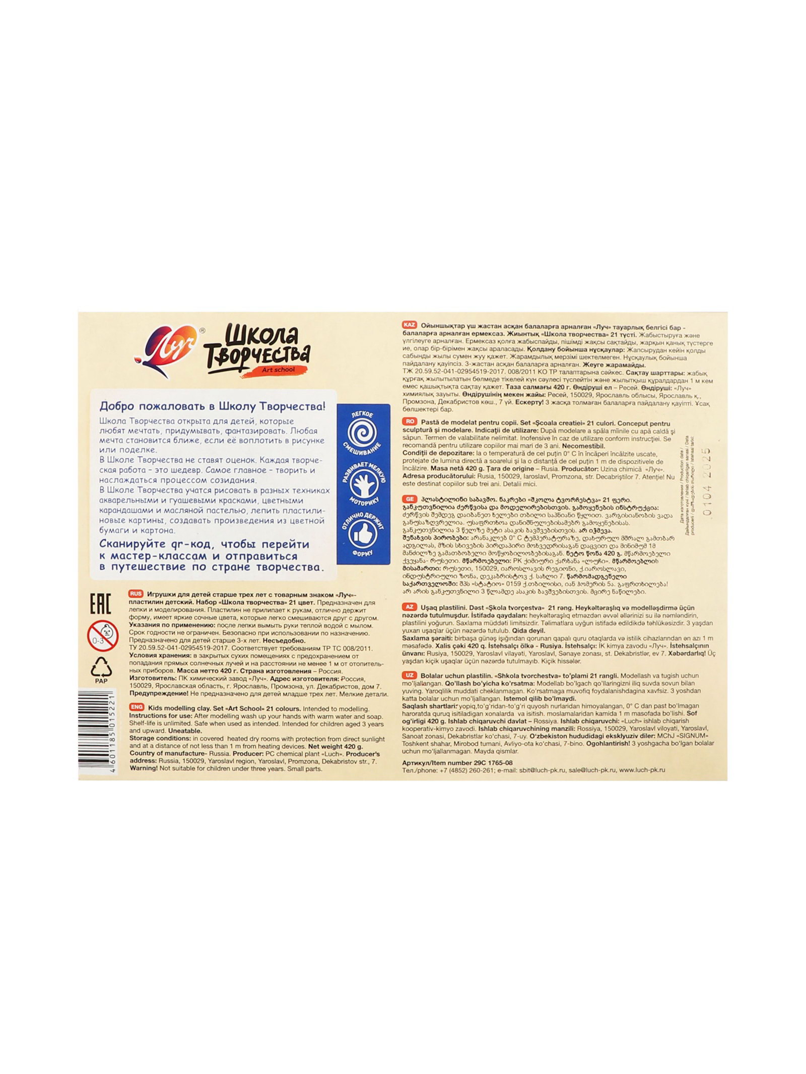 Пластилин "Луч. Школа творчества", 21 цвет, 420 г, Луч, Россия