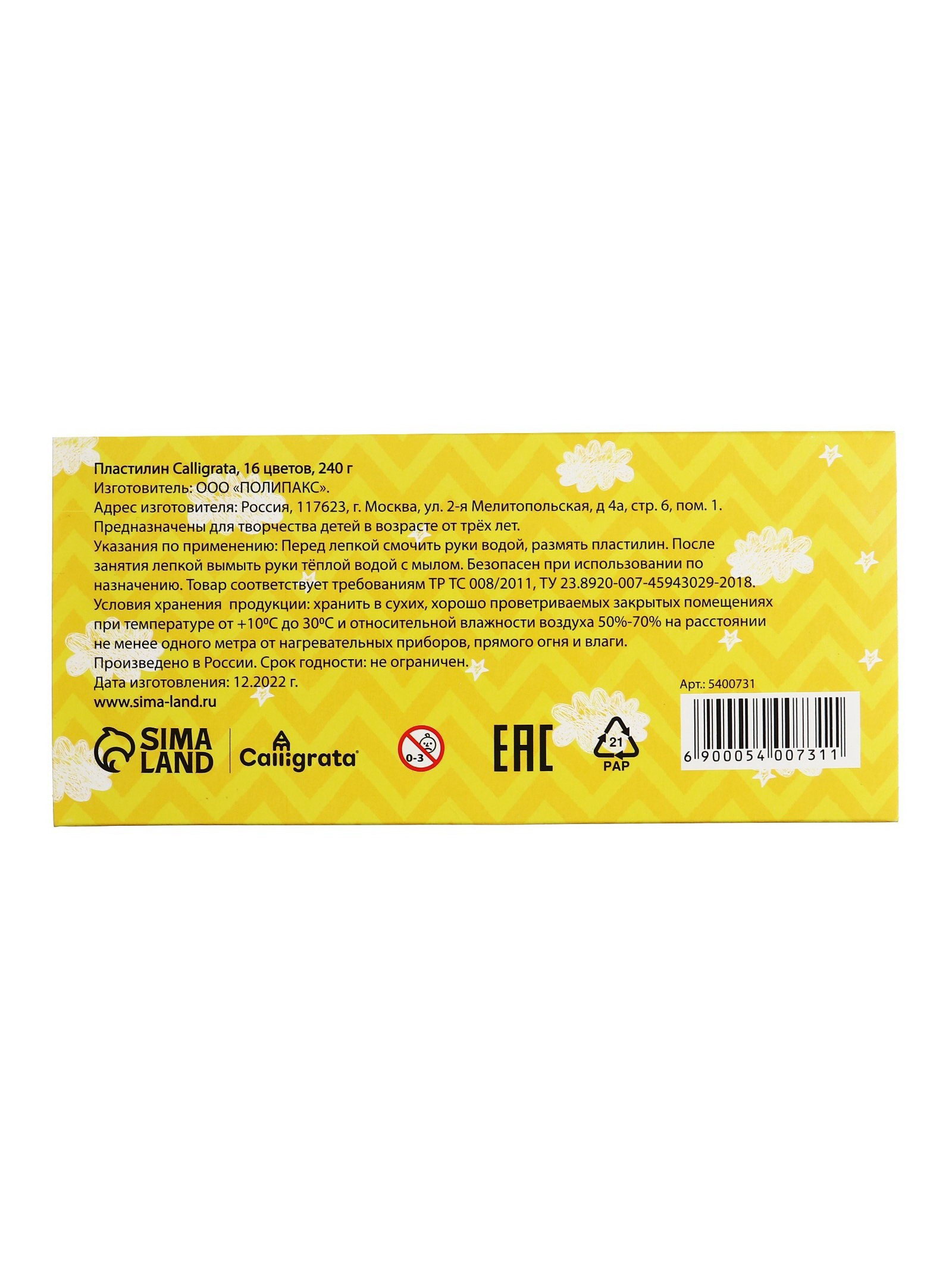 Пластилин "Классический", 16 цветов, 240 г, Calligrata, Россия