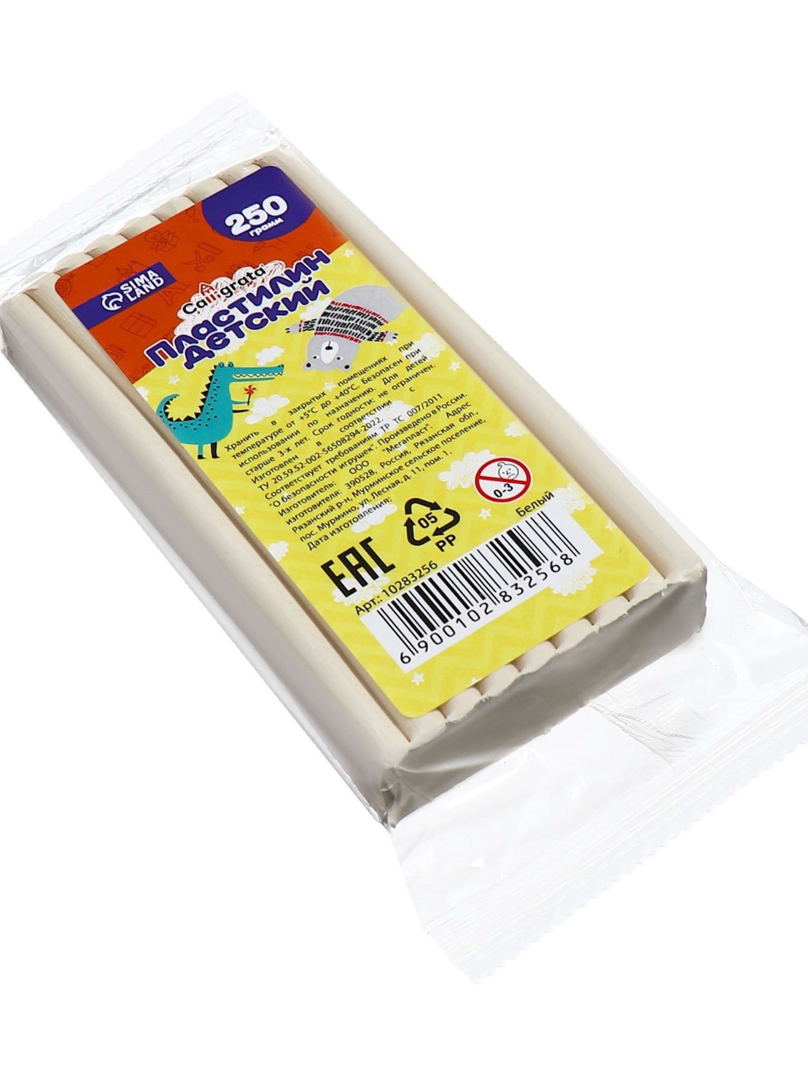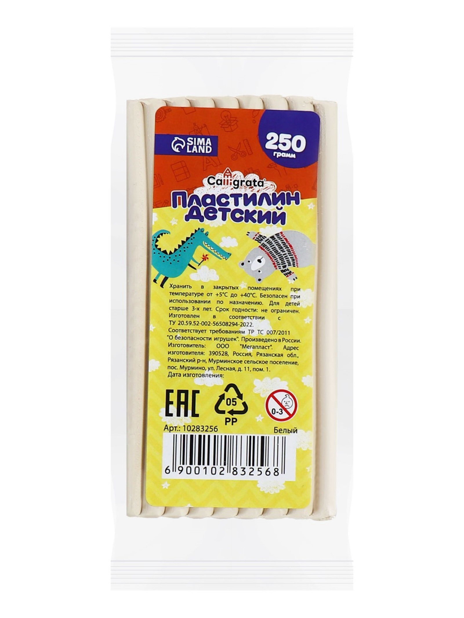 Пластилин "Классический", 250 г, белый, Calligrata, Россия