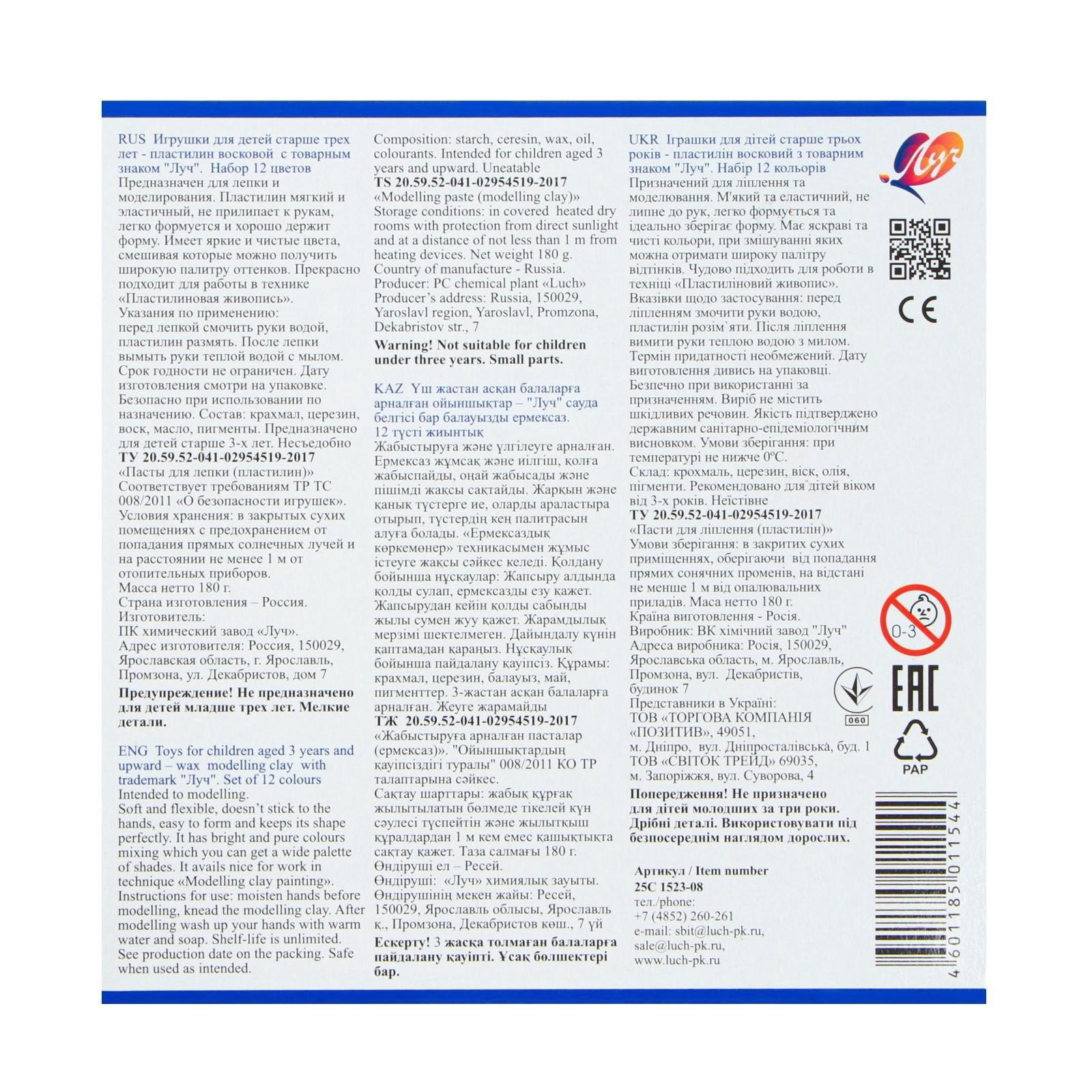 Размер упаковки: 16.5 x 2 x 17 см. Особенности изделия: Восковой пластилин В наборе, шт.: 12 Вид изделия: Пластилин Набор: Да Количество цветов: 12 Лицензия: Нет tnved: 3407000000 Со стеком (да/нет): Да Вес, г: 180 Европодвес: Нет Штрихкод на единице товара: Да Температурное ограничение транспортировки: Нет Возраст: От 3 лет Тематика набора: Лепка Температурное ограничение: Да Цвет: МИКС Пластилин восковой "Фантазия"в яркой подарочной упаковке предназначен для широкого круга покупателей самого разного возраста. Пластилин данной линейки, благодаря специально разработанной рецептуре, отличается от классического пластилина мягкостью и эластичностью, очень красивой и богатой палитрой цветов. Перед началом лепки не требует предварительного разминания, при этом сохраняет все свойства классического пластилина. Идеально держит форму, не липнет к рукам и не пачкается. Имеет чистые, красивые цвета, на которых останавливается детский взгляд. Можно комбинировать с классическим пластилином. Пластилином можно не только лепить, но и рисовать по бумаге и картону. Два вида дизайна. | ||