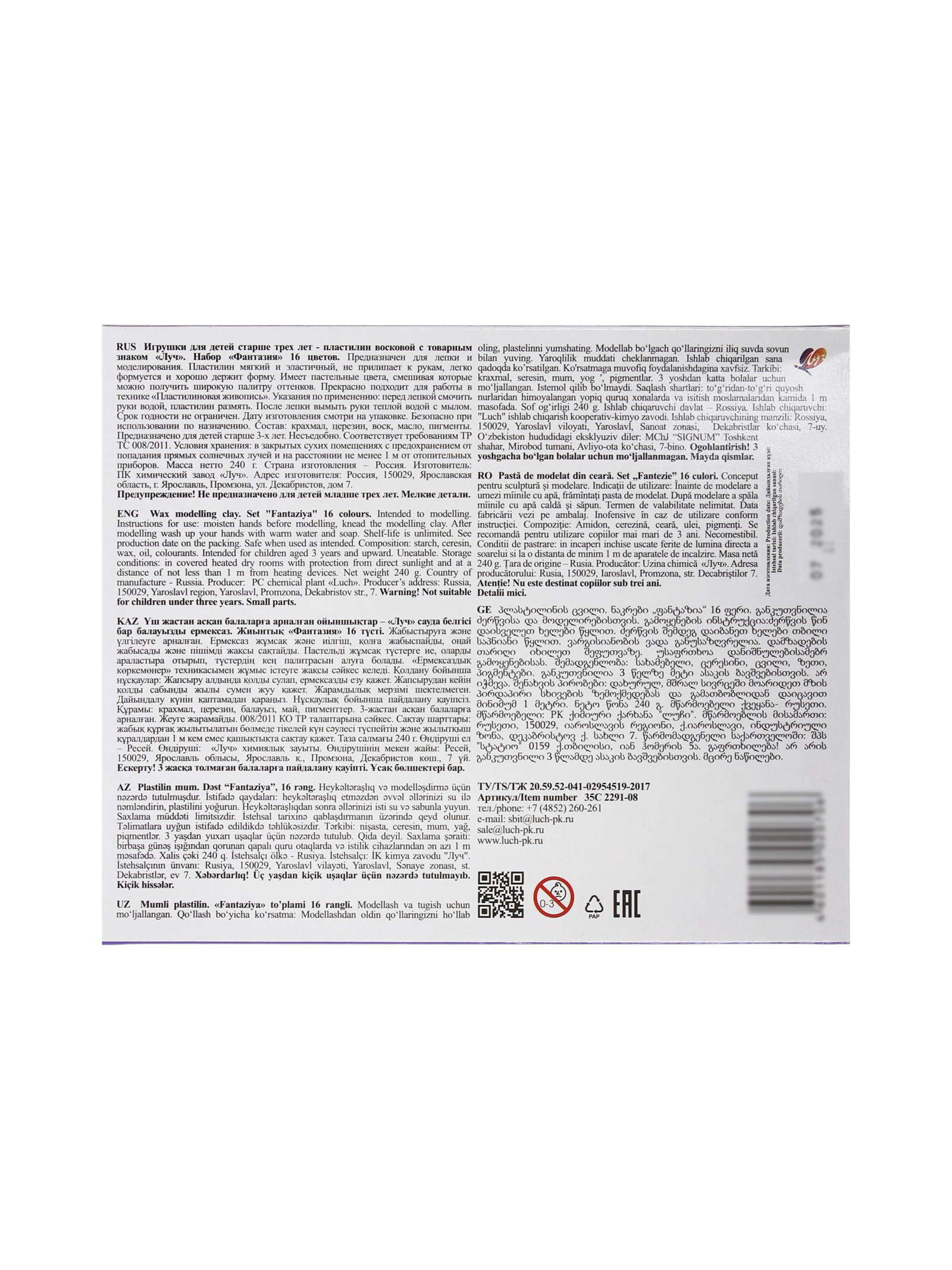 Пластилин мягкий, Луч, Россия