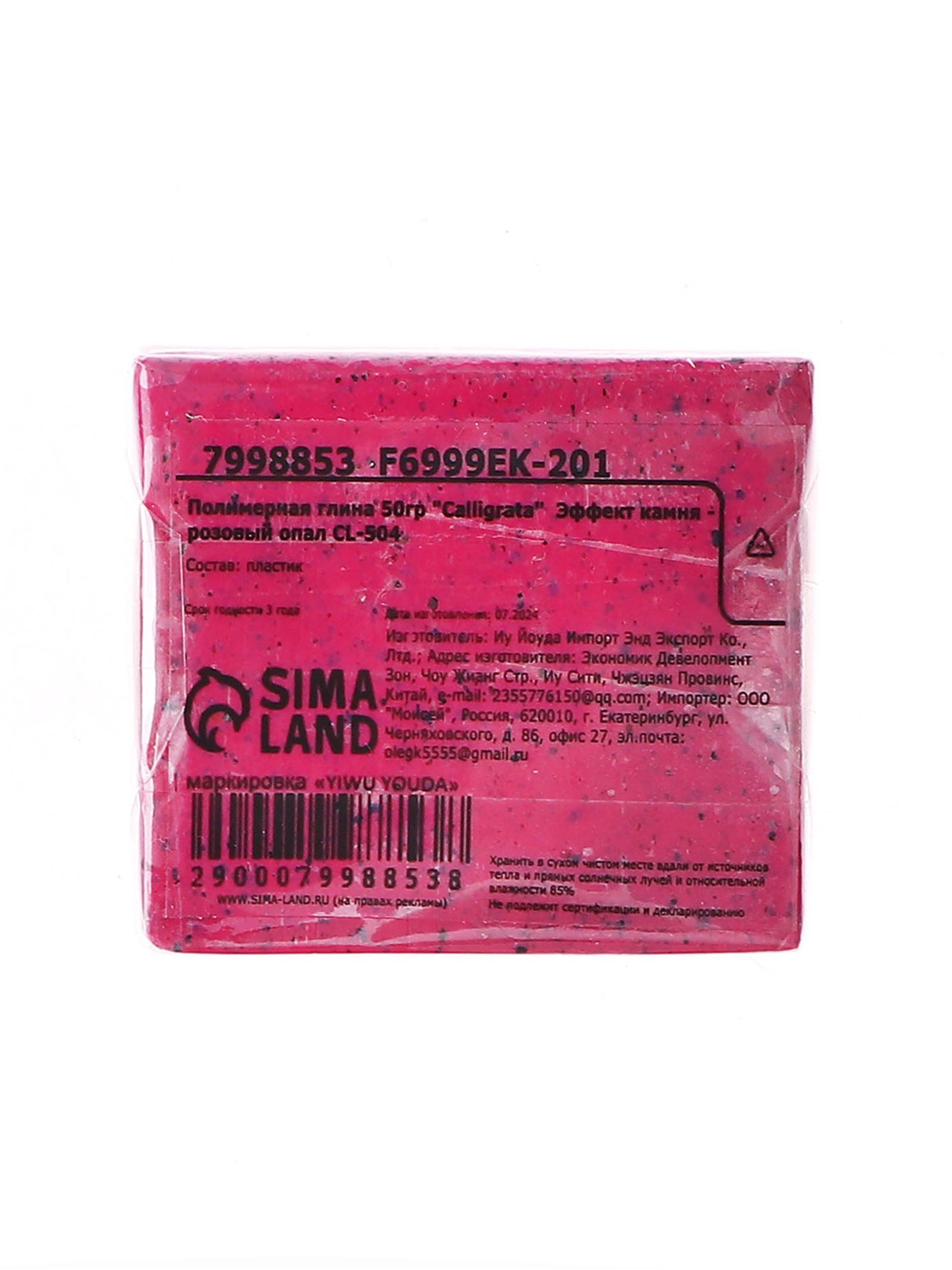 Полимерная глина 50 г, с эффектом камня, розовый опал, 5x5.5x1 см., Calligrata, Китай