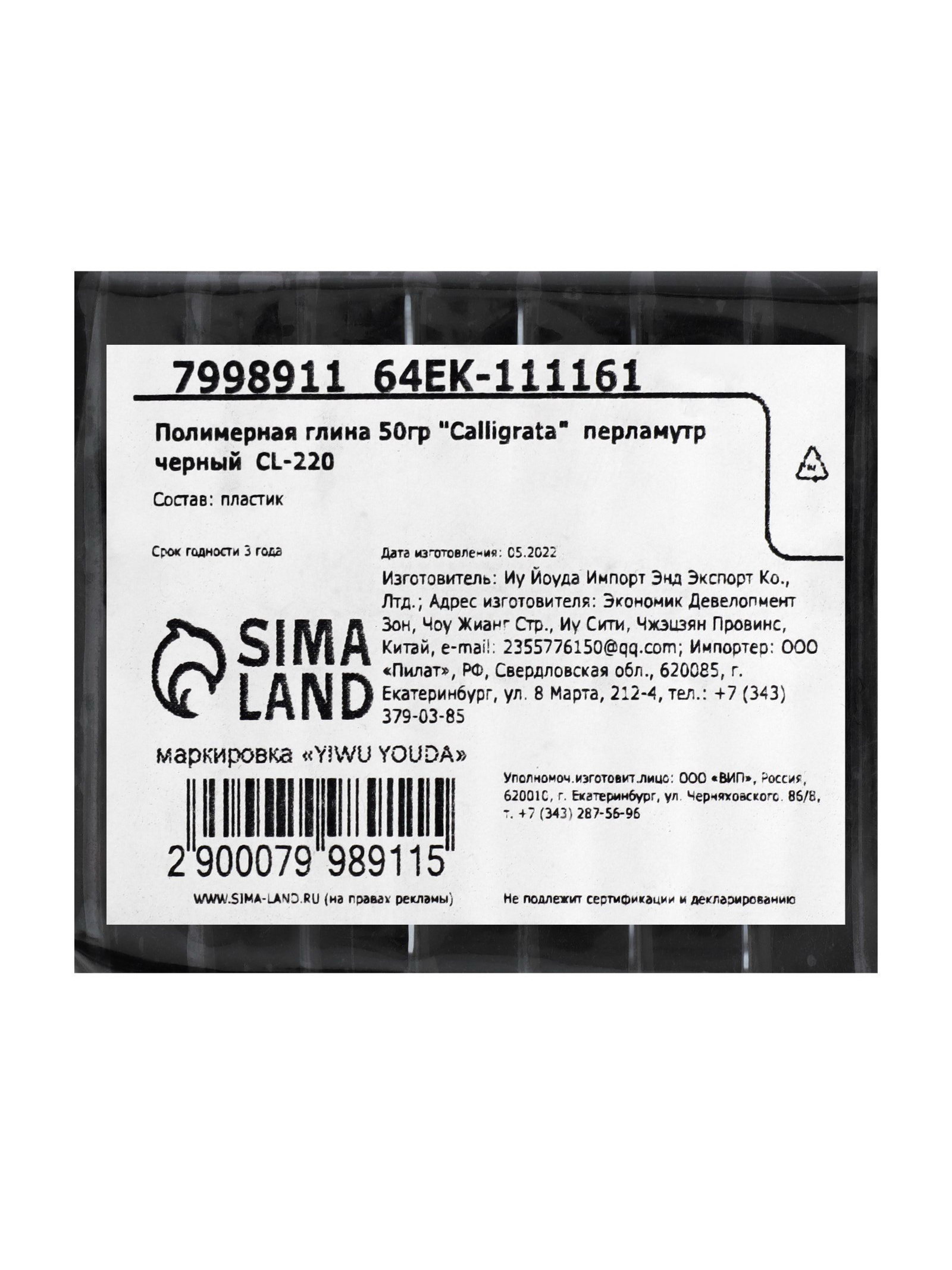 Размер упаковки: 5.5 x 1.5 x 6 см. tnved: 3407000000 Особенности изделия: Запекаемое Вид упаковки: Пакет Вес, г: 50 Набор: Нет В наборе, шт.: 1 Температурное ограничение транспортировки: Нет Цвет: Чёрный Особенности цвета: Перламутровый Количество цветов: 1 ПОЛИМЕРНАЯ ГЛИНА – современный пластичный материал для лепки, который с каждым годом становится всё популярнее. Это запекаемая полимерная глина, изделия из которой подвергаются термической обработке, после чего становятся твёрдыми, прочными и влагостойкими. | ||