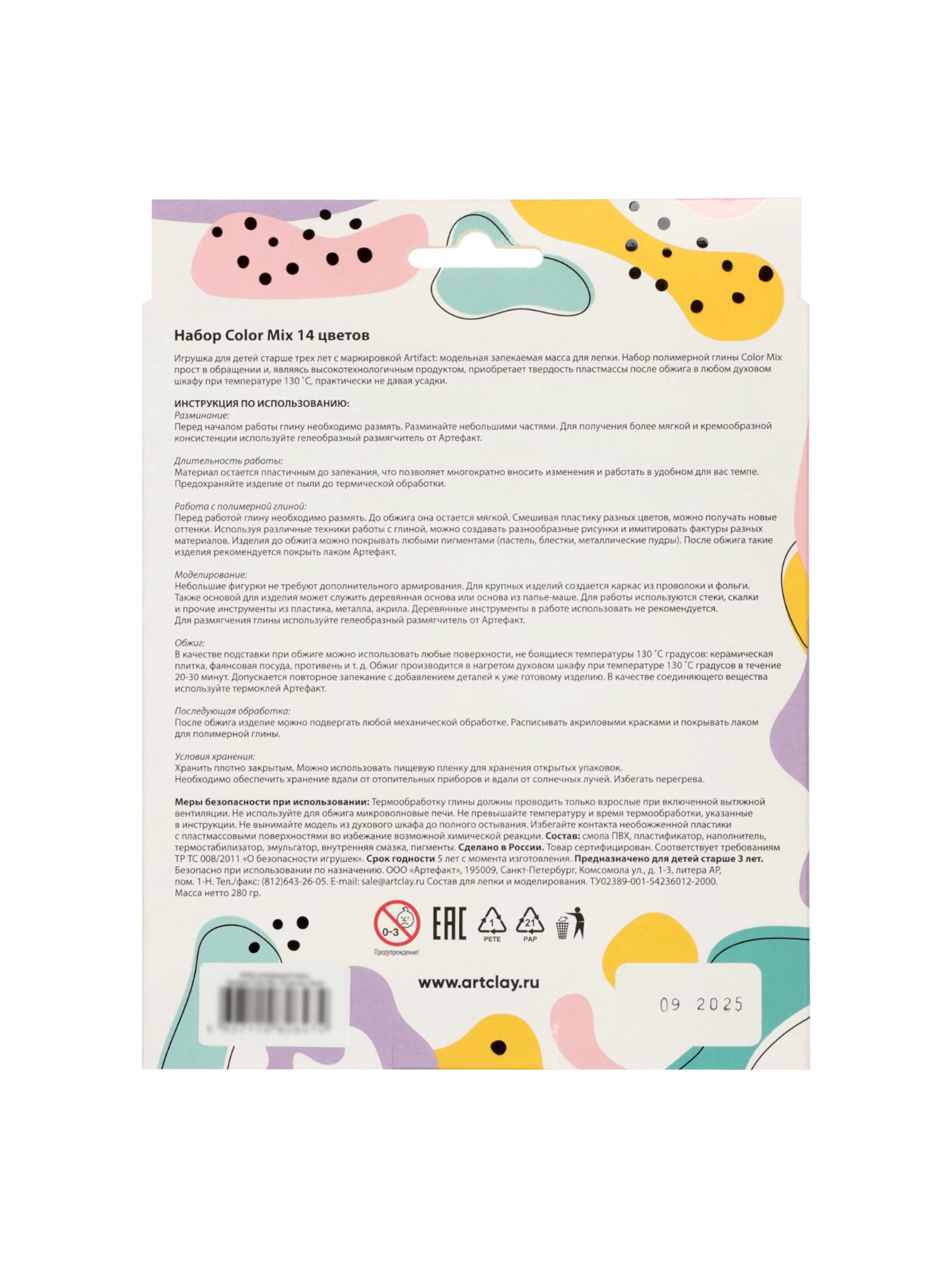 Полимерная глина Color Mix, набор, запекаемая, 14 цветов doll, Artifact, Россия