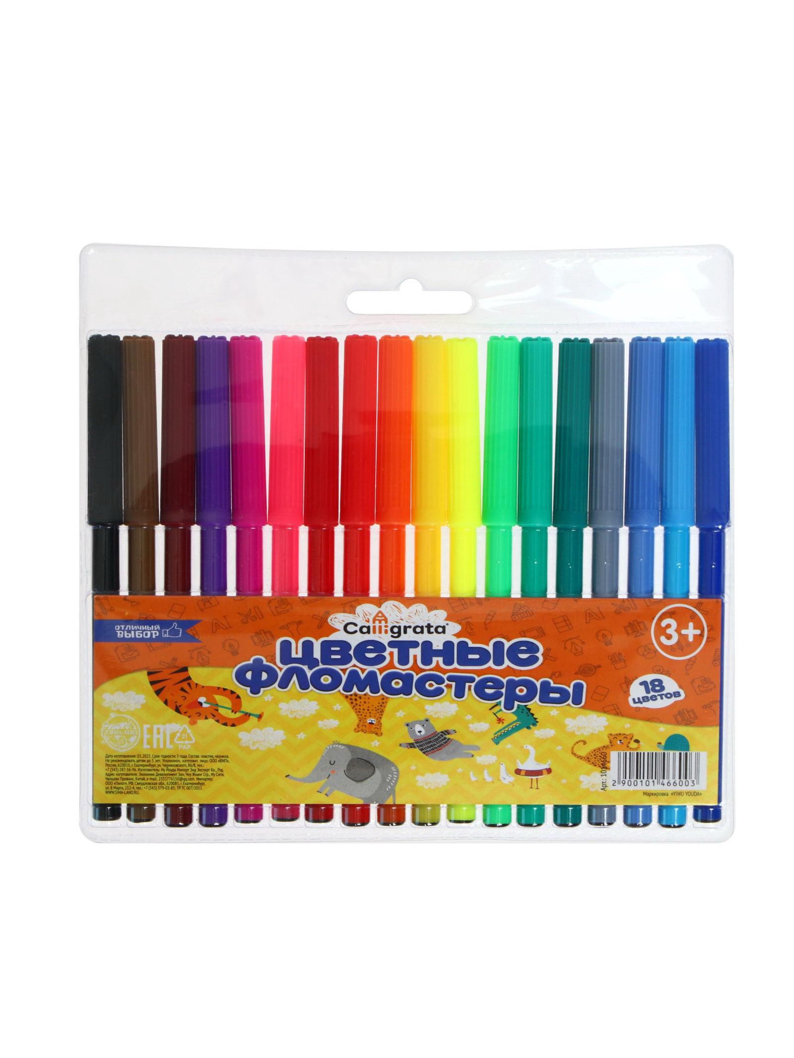 Фломастеры, 18 цветов, вентилируемый колпачок, 0.8x0.8x12 см., Calligrata, Китай