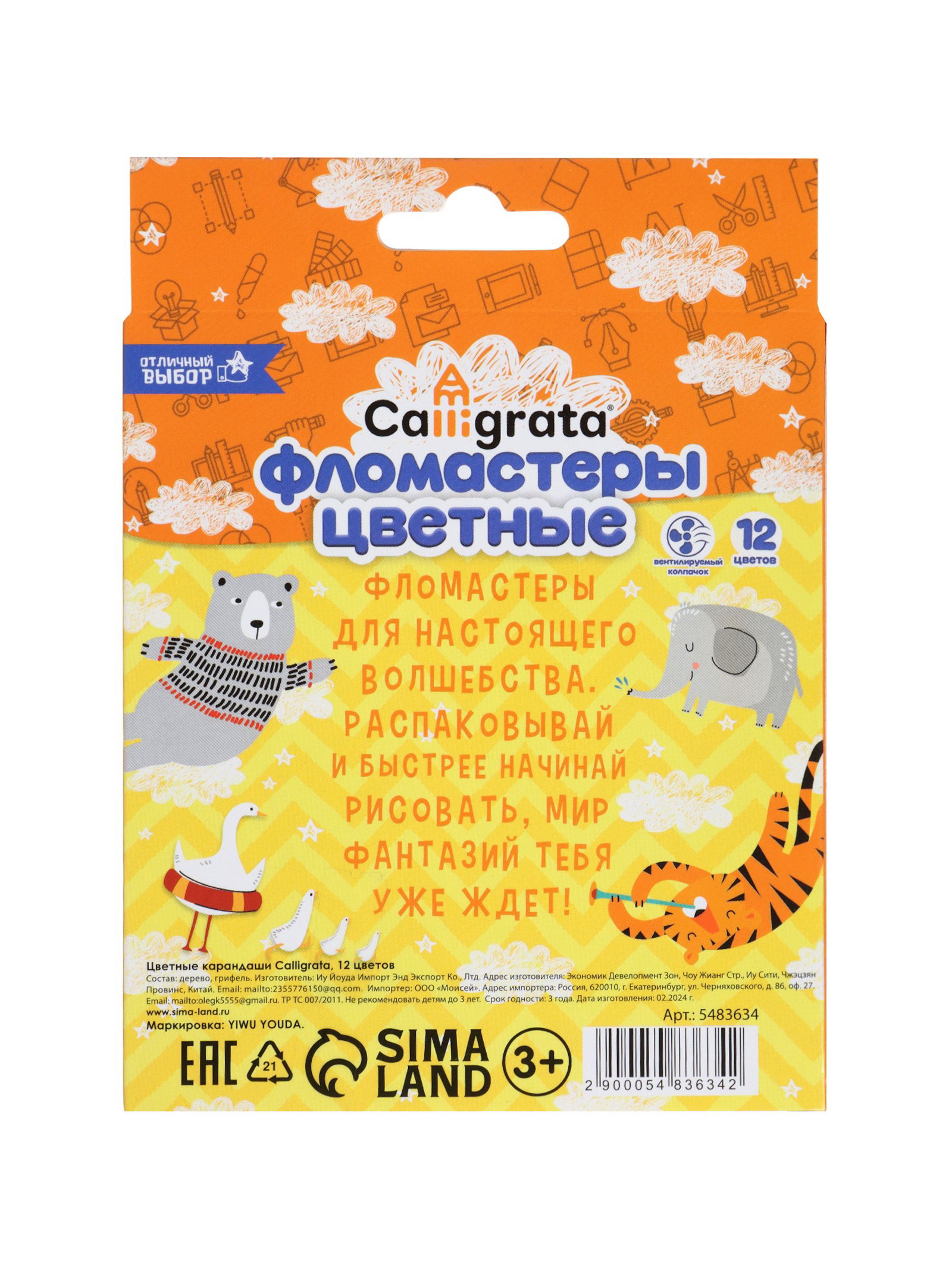 Фломастеры 12 цветов, вентилируемый колпачок, в картонной коробке, Calligrata, Китай