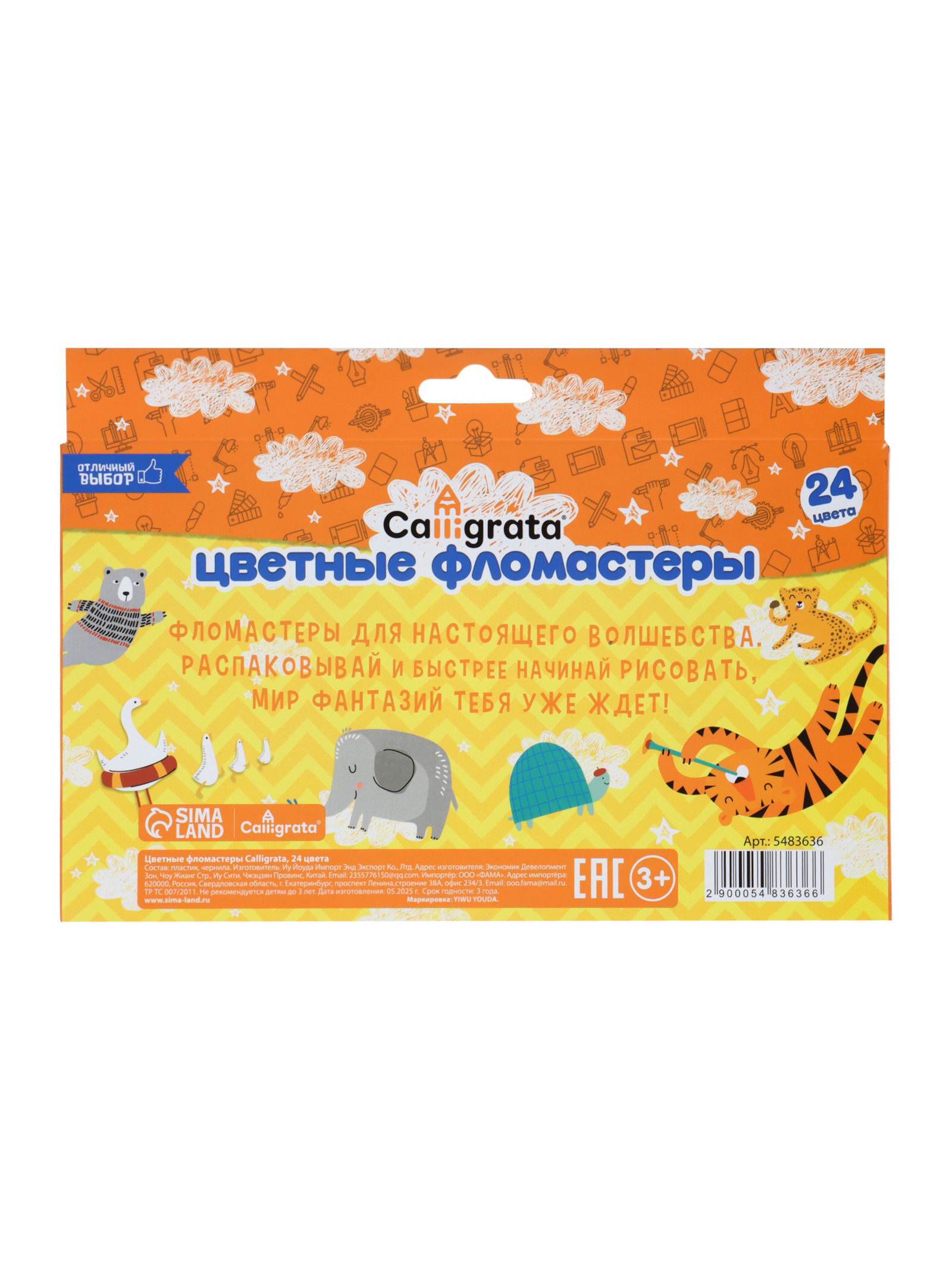 Размер упаковки: 16 x 1 x 22.5 см. Реестр Минпромторга: Нет tnved: 9608200000 tnved: 9608200000 Европодвес: Да Количество цветов: 24 Колпачок у фломастера: Вентилируемый Вид упаковки: Коробка картонная Штрихкод на единице товара: Да Особенности: Без особенностей Набор фломастеров Calligrata содержит 24 ярких и насыщенных цвета. Вентилируемый колпачок обеспечивает безопасное рисование для ребенка . Идеально подходят для детей от 3-х лет и для тех, кто только начинает свой творческий путь. Фломастеры состоят из пластика, чернил. Упаковка представлена в виде цветной картонной коробки. Благодаря фломастерам Calligrata Вы сможете воплотить все свои творческие фантазии в реальность. | ||