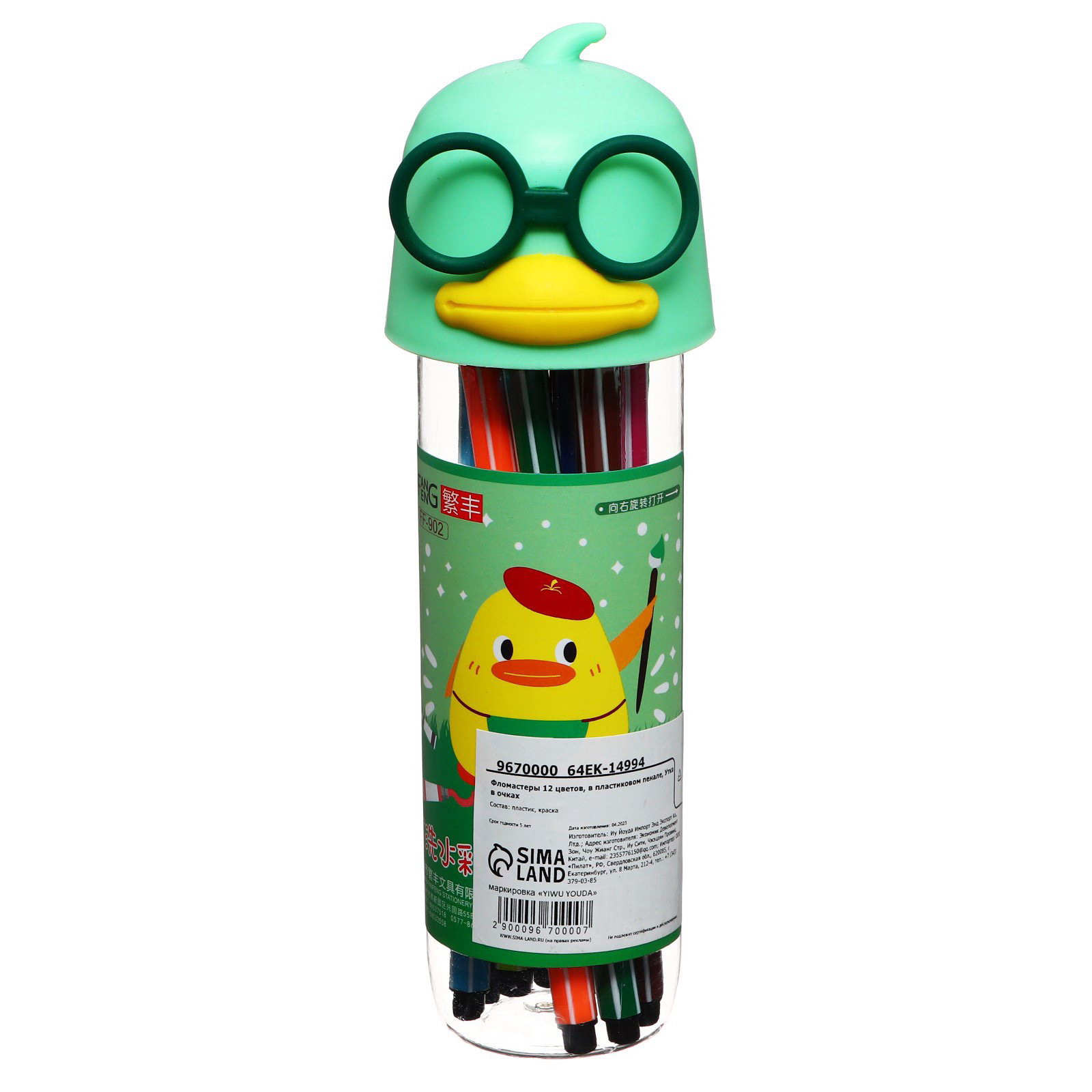 Фломастеры 12 цветов "Утка в очках", в пластиковом пенале, МИКС, Китай