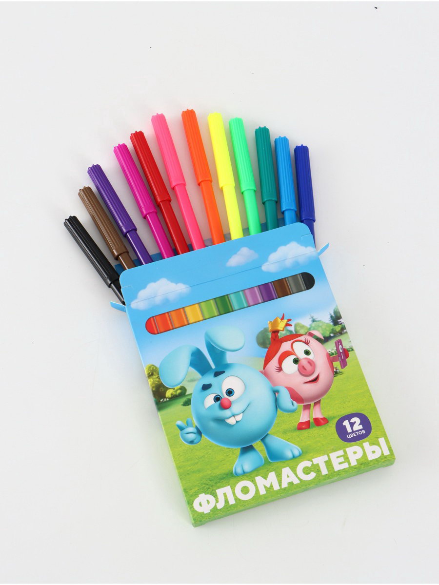 Фломастеры 12 цветов, вентилируемый колпачок, Смешарики, Китай