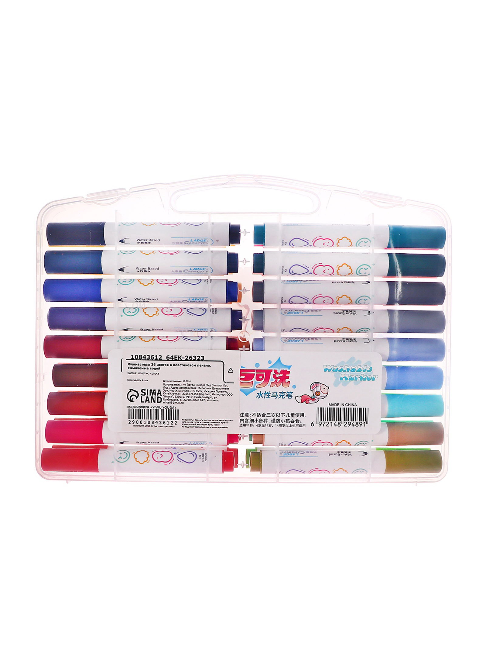 Фломастеры 36 цветов в пластиковом пенала, смываемые водой, 18.5x25.4x3.4 см., Китай