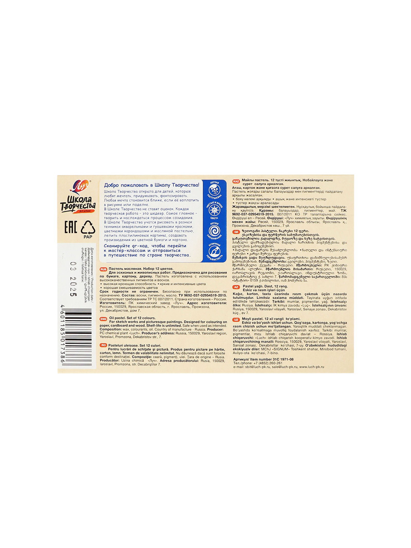 Пастель масляная 12 цветов, Школа творчества, трёхгранная, Луч, Россия