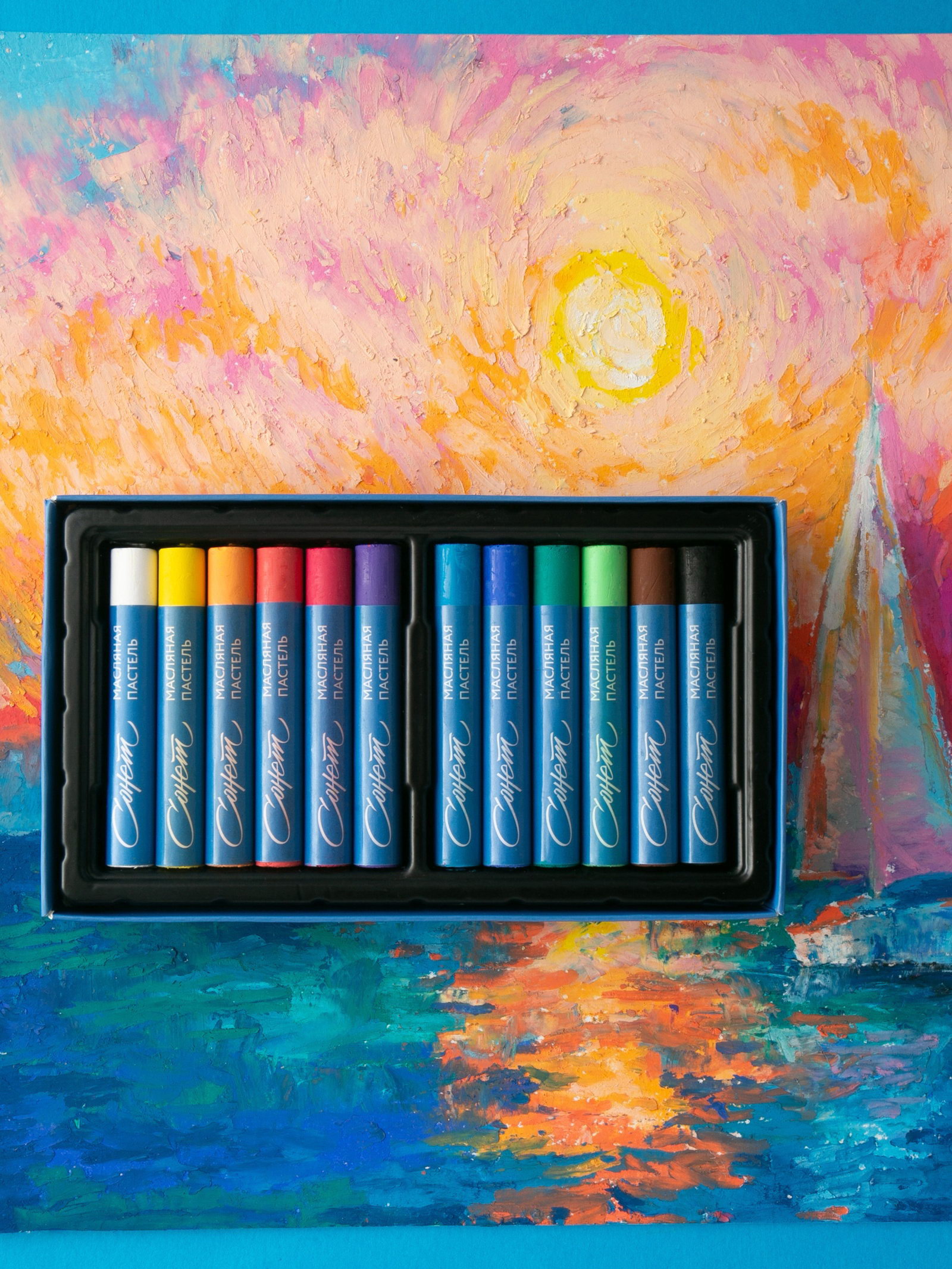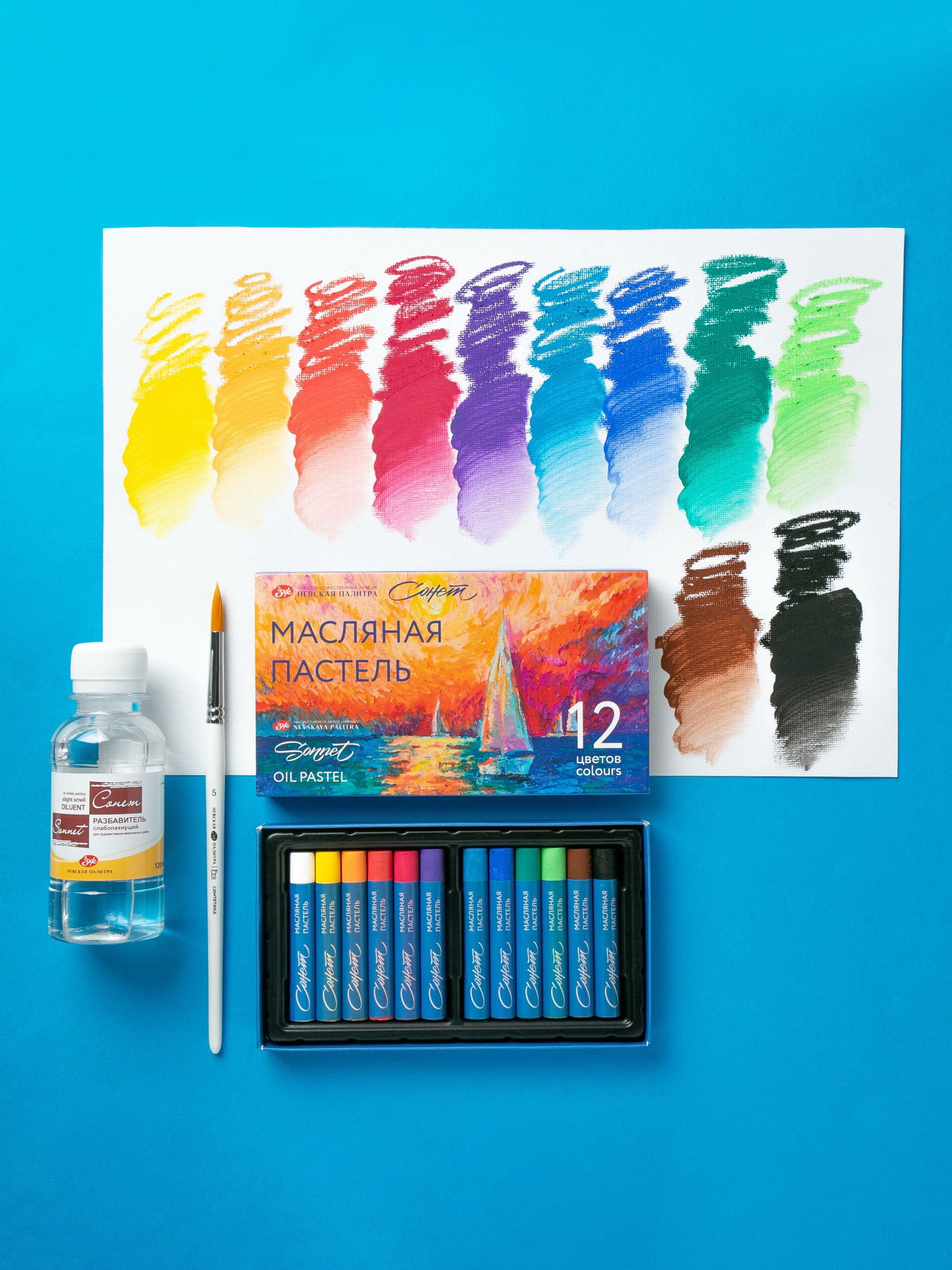 Пастель масляная 12 цетов ЗХК "Сонет", 10/69, круглая, Завод художественных красок «Невская палитра», Китай