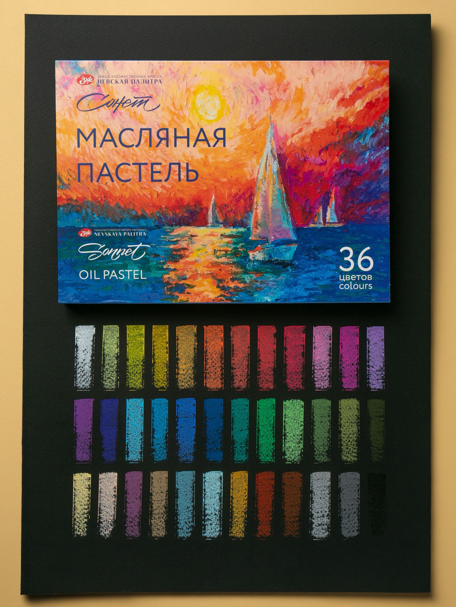 Пастель масляная 36 цветов, ЗХК "Сонет", 10/69, круглая, Завод художественных красок «Невская палитра», Китай