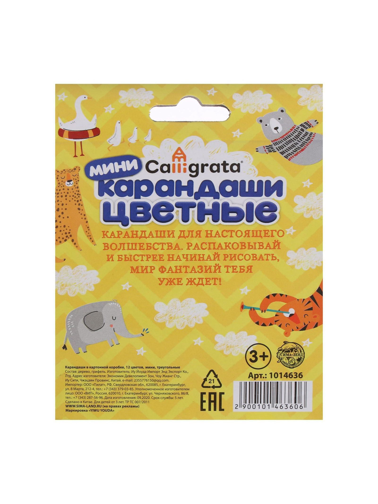 Карандаши цветные, 12 цветов, деревянные, трёхгранные, мини, 0.8x0.8x9 см., Calligrata, Китай