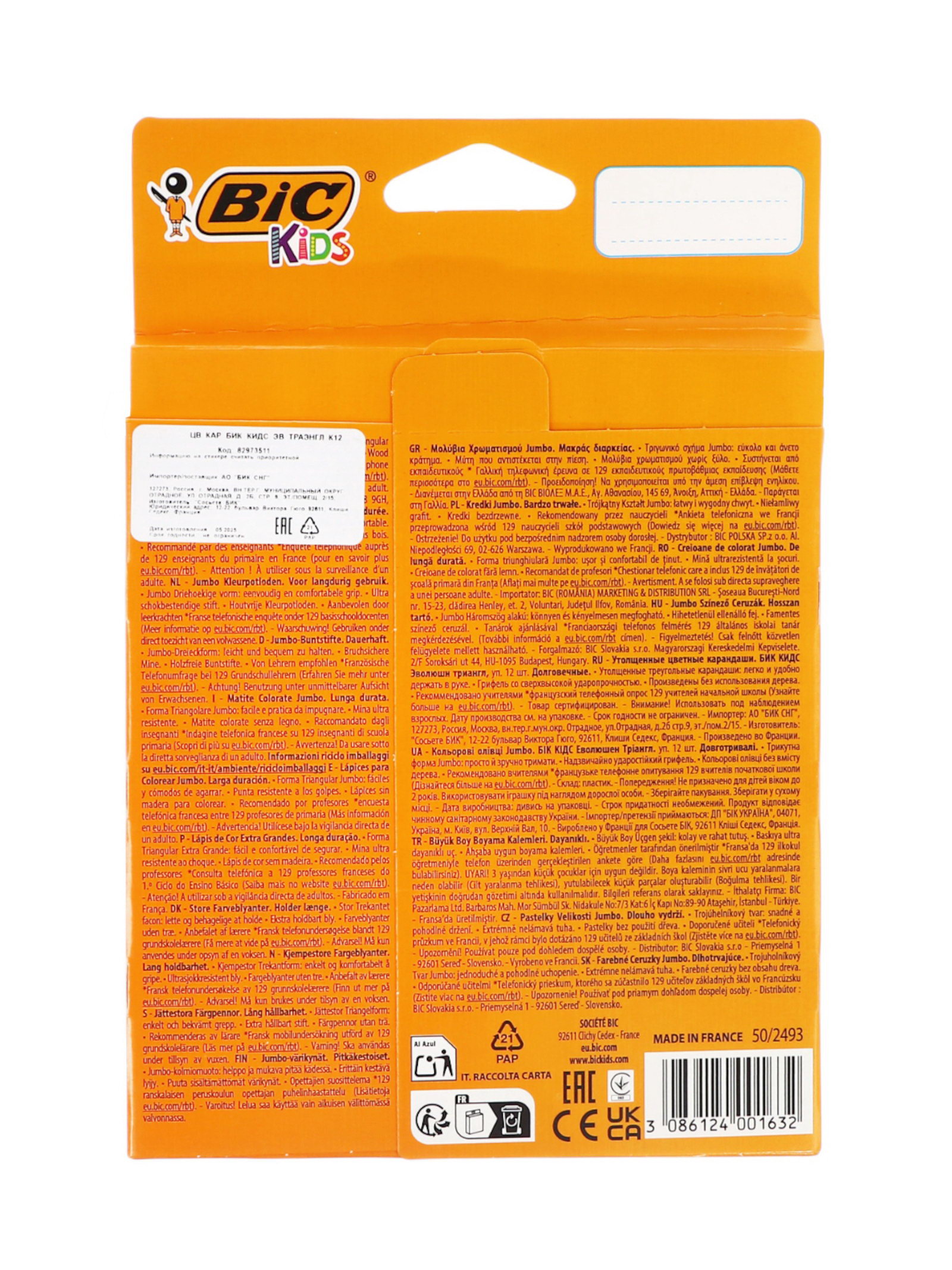 Размер упаковки: 12.5 x 1.5 x 18.5 см. Набор: Да Форма: Трёхгранные Тип: Карандаши Утолщённые: Нет Материал корпуса: Пластик Реестр Минпромторга: Нет Особенности: Классический tnved: 9609110000 Цвет: Разноцветный Количество цветов: 12 Штрихкод на единице товара: Да Европодвес: Да Вид упаковки: Коробка картонная Принадлежности для детского творчества BIC Kids уже не первый год широко известны в России. Детям важно, чтобы инструменты ярко рисовали, а родителям чтобы были безопасны. Оба эти качества объединяют в себе принадлежности для рисования BIC. Все они соответствуют европейским стандартам безопасности игрушек (EN71), тестируются независимыми токсикологами (ASTM D-4236) и не содержат тяжёлых металлов и ПВХ. Пластиковые карандаши BIC Kids Evolution очень прочные и не образуют острых краёв на изломе. Карандаши серии Evolution изготавливаются с применением эксклюзивного метода экструзии. Защитный слой вокруг грифеля придаёт этим карандашам повышенную прочность. Пластиковые цветные карандаши Bic Kids серии Evolution Triangle ECOlutions удобной треугольной формы помогут ребёнку научиться держать карандаш и воплотить в жизнь все мечты и выдумки. Крупный размер карандашей идеален для маленьких детских рук. Карандаши Bic Kids серии Evolution Triangle ECOlutions абсолютно безопасны для детей, изготовлены из высококачественного переработанного материала, не расщепляются при механическом воздействии и не образуют острых краёв при изломе. Карандаши имеют очень прочный стержень, обладают яркими, насыщенными цветами. Идеально подходят для начинающих художников от 2-х лет. Широкий выбор ярких цветов. Цветной ультрапрочный стержень толщиной 4,3 мм обеспечивает хорошую степень закрашивания. Особенности :