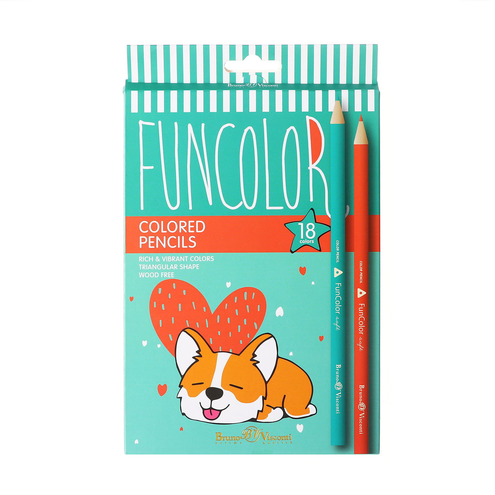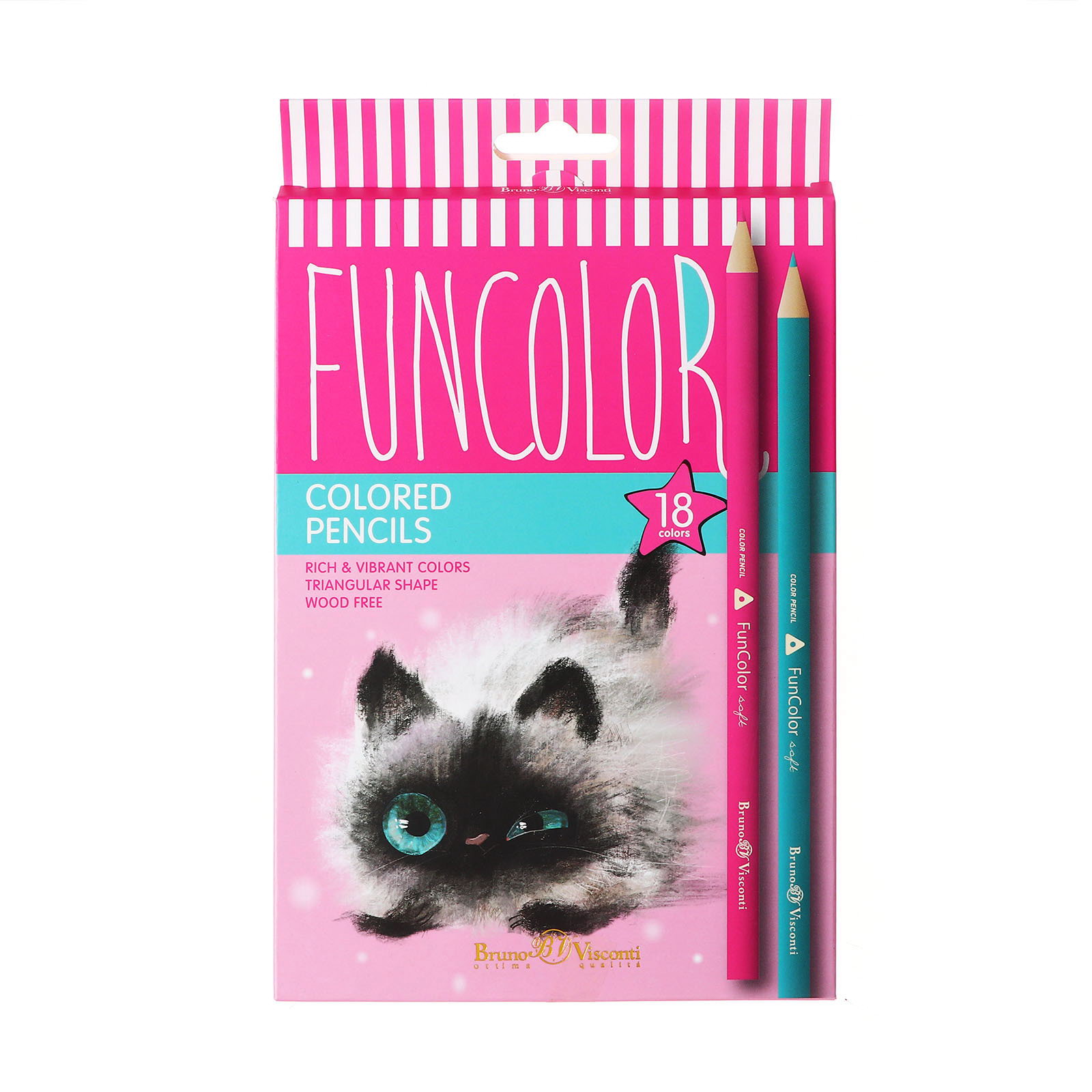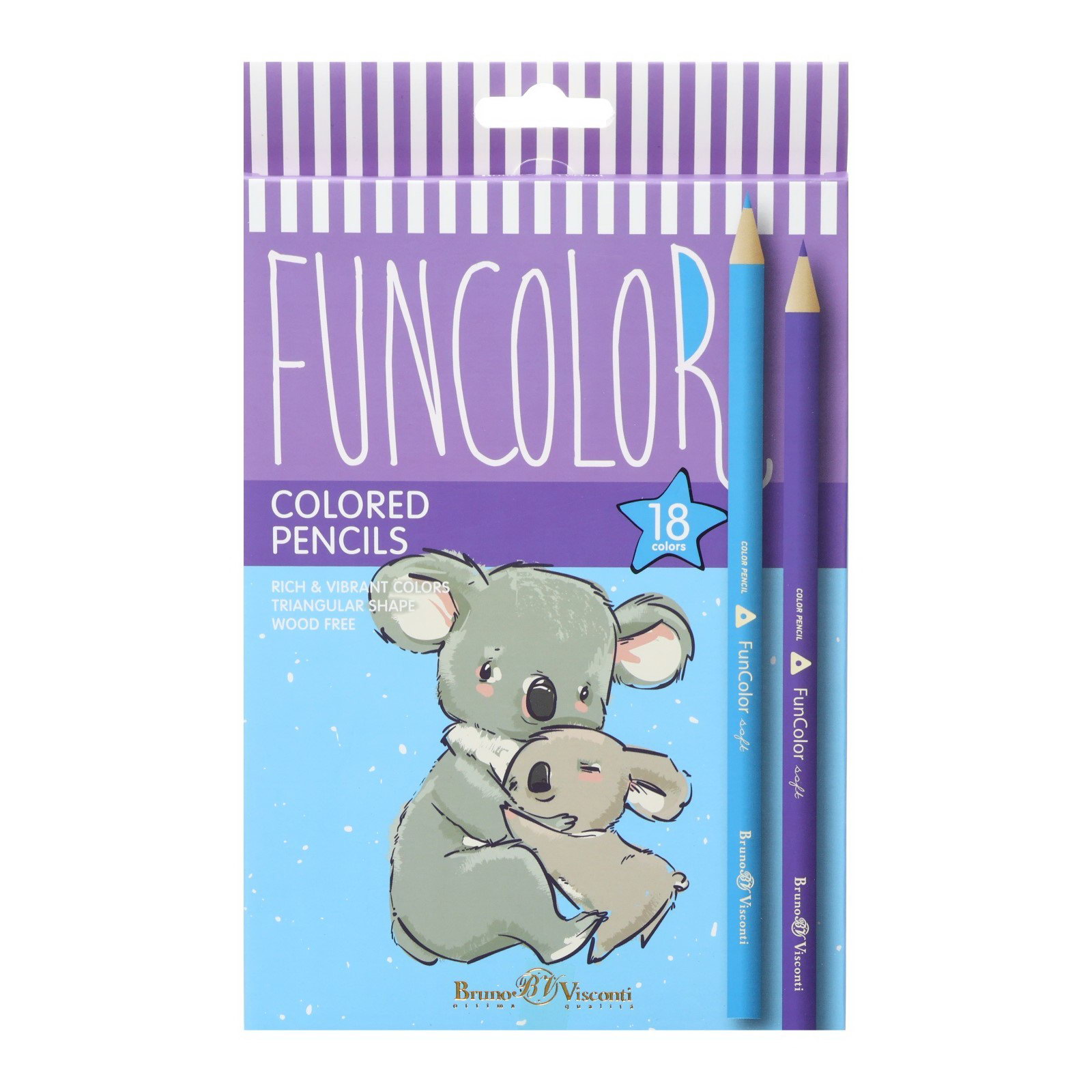 Карандаши цветные 18 цветов. FunColor, пластиковые, трёхгранные, МИКС, 13x1x21 см., BrunoVisconti, Китай
