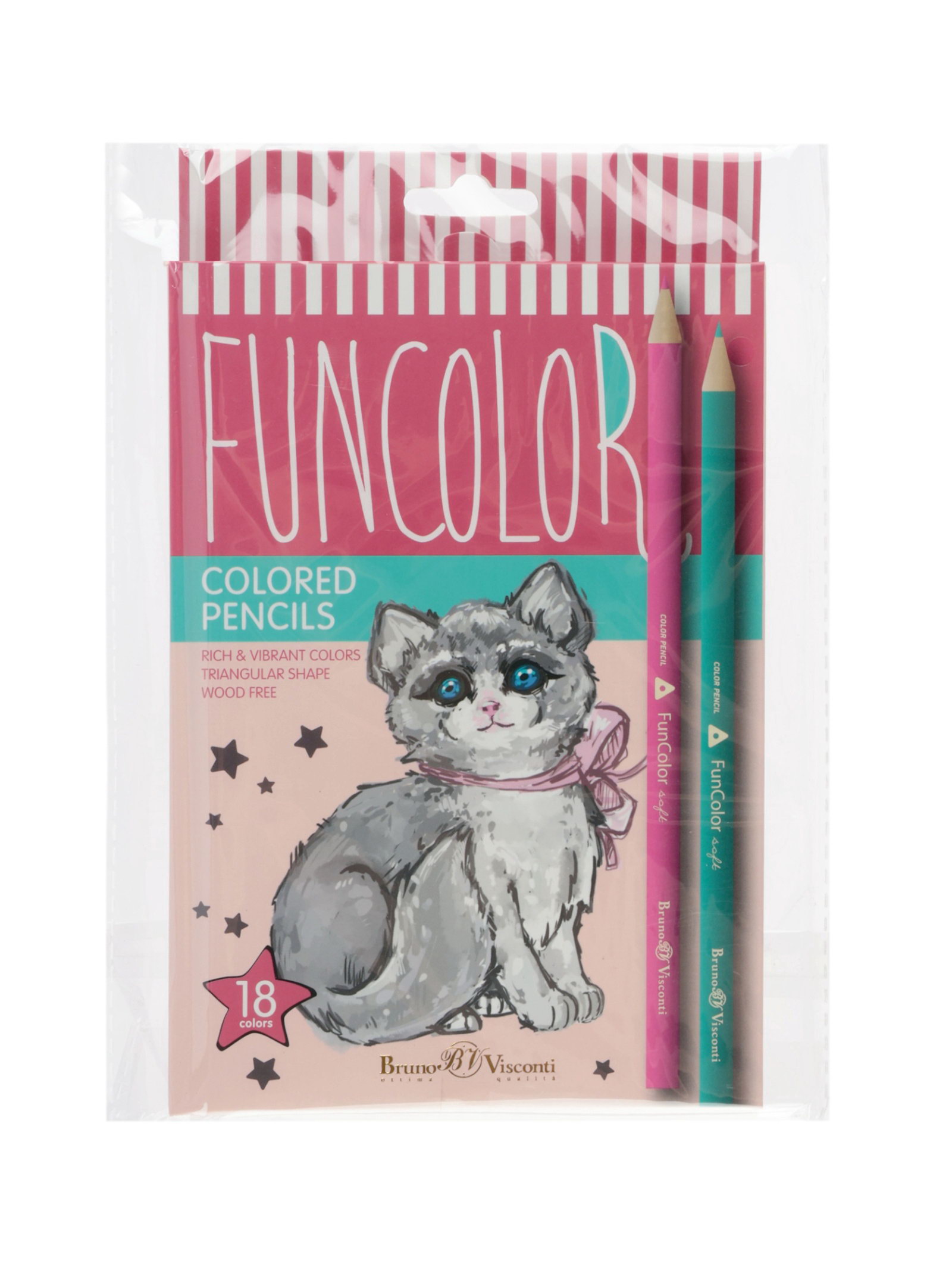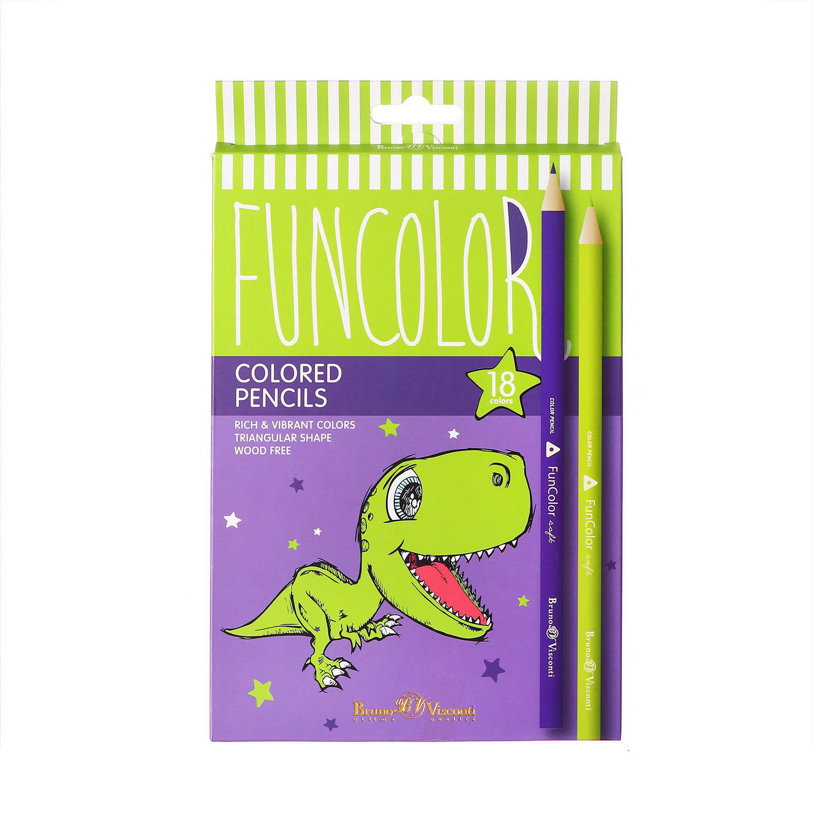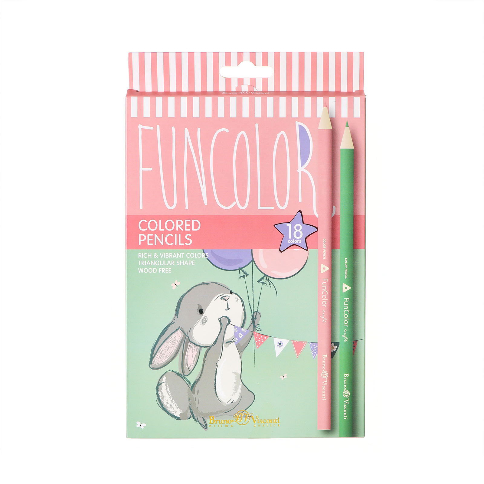 Карандаши цветные 18 цветов. FunColor, пластиковые, трёхгранные, МИКС, 13x1x21 см., BrunoVisconti, Китай