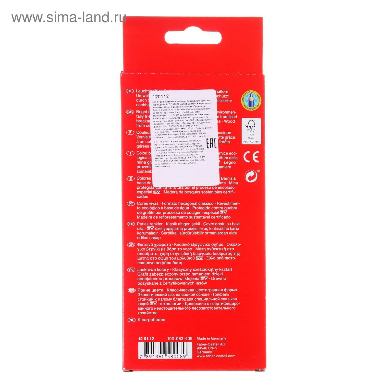 Карандаши 12 цветов ECO "Замок" 1201 7/2.8 мм, шестигранный корпус, без точилки, FABER-CASTELL, Бразилия