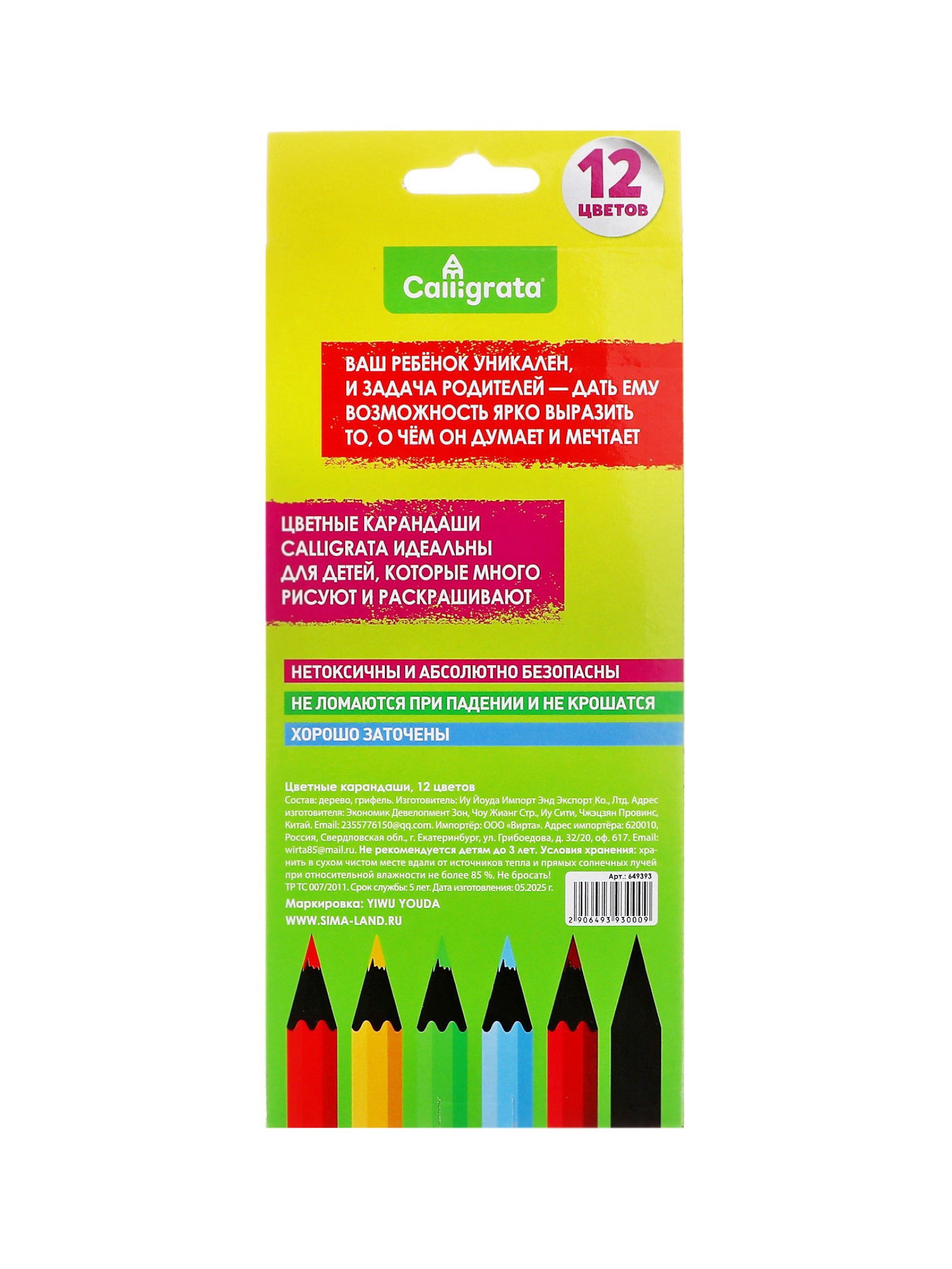Карандаши цветные заточенные, 12 цветов, в картонной коробке, Calligrata, Китай