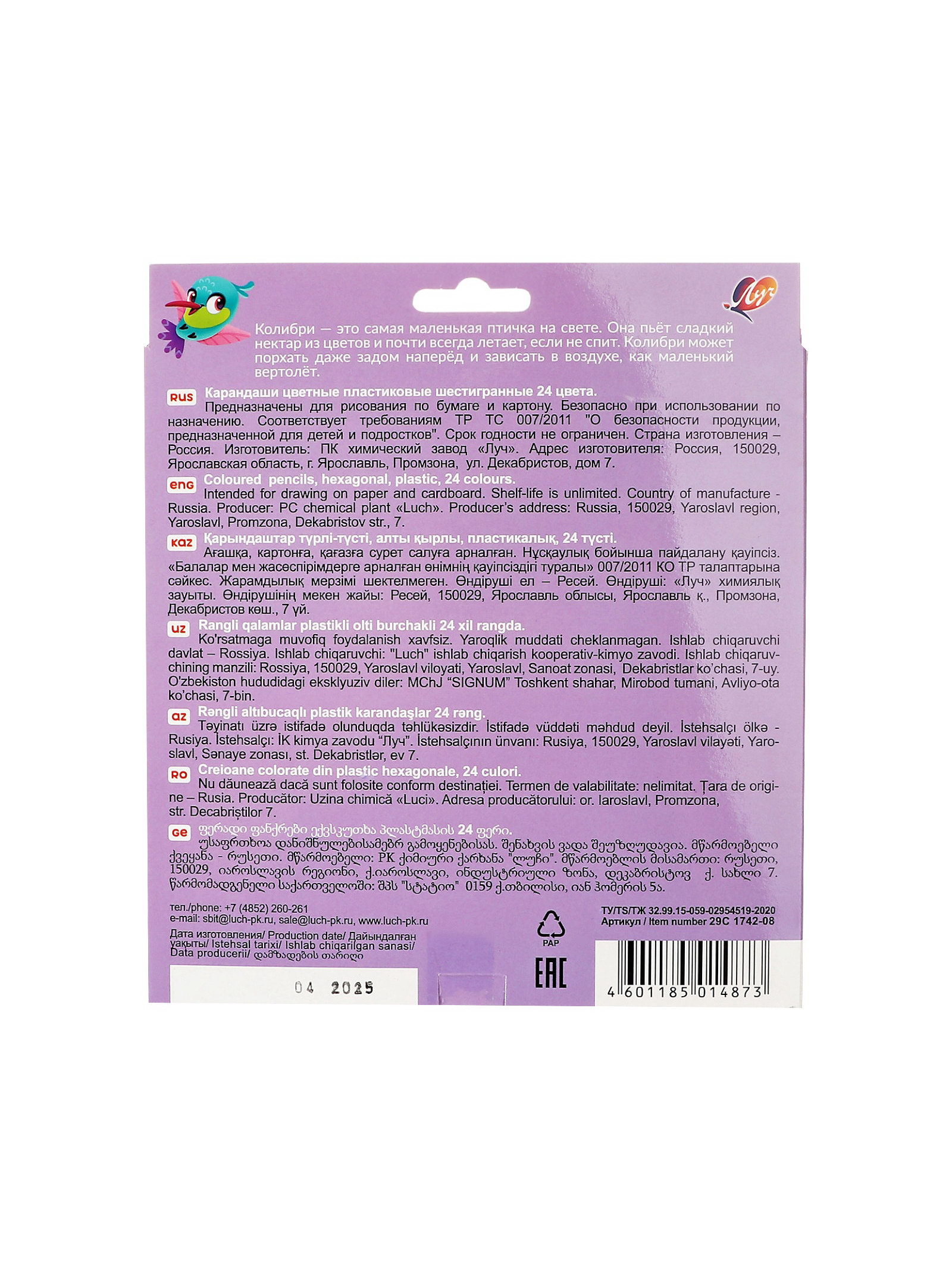 Карандаши цветные 24 цвета ZOO, пластиковые, шестигранные, Луч, Россия